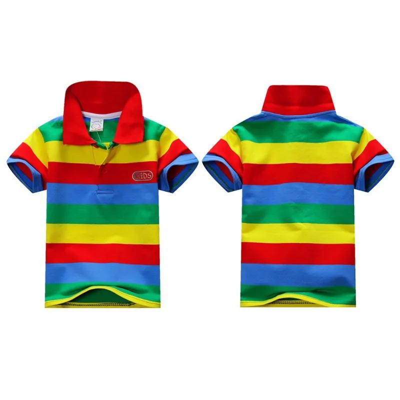Summer Kids Child Cotton Clothes Tops Tee Boys Short Sleeve T-Shirt Striped Polo Shirt