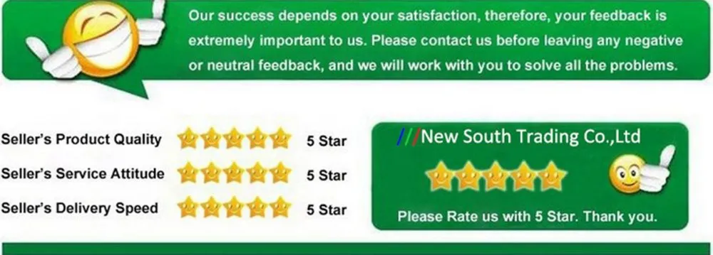 - We rely on our Aliexpress reputation and customer satifaction to succeed.Therefore your feedback is extremely important to us.Please leave us a positive comment and 5 star ratings if you get satisfied with our goods and service.