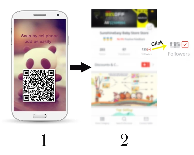 Welcome to add our shop to your favorite store You will be able to get the latest exhibition offers and extra gifts ~ Use the phone Aliexpress App to scan Figure 1 2D code. Then click on the location shown in Figure 2