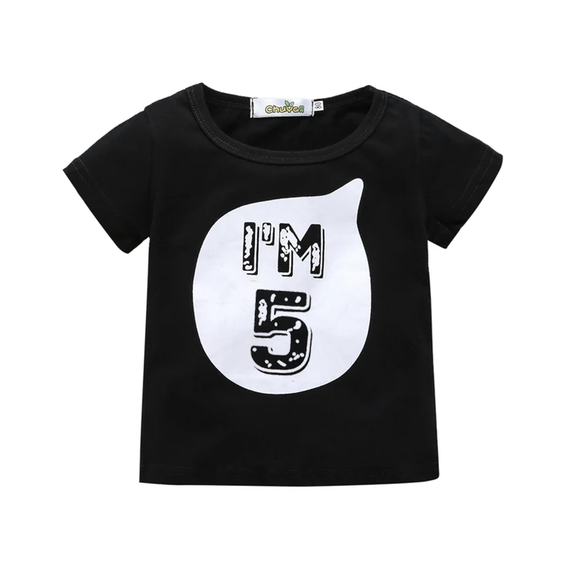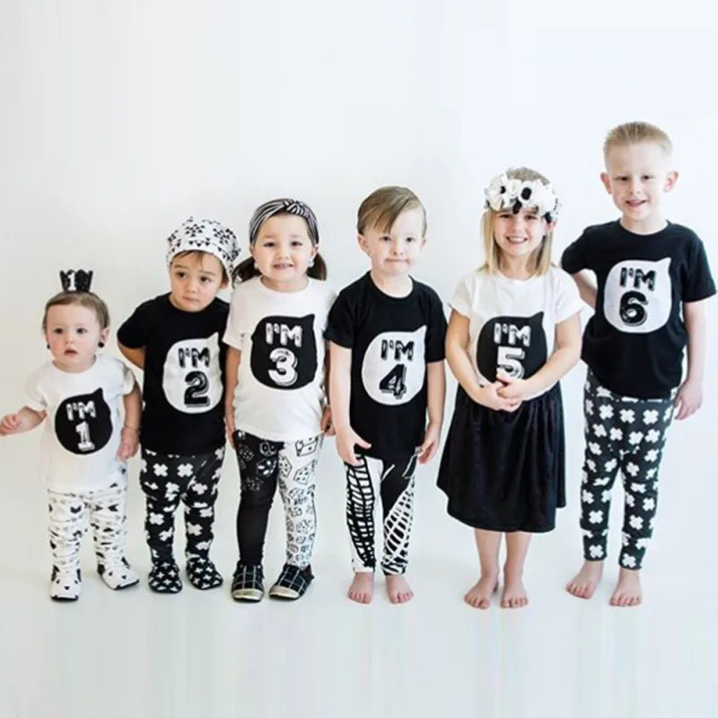 2017 0-6Y Baby Boys Girls T-shirt Children Letter Birthday Age Printed Black White Noir Cotton Blends Summer Shirts Top Tees