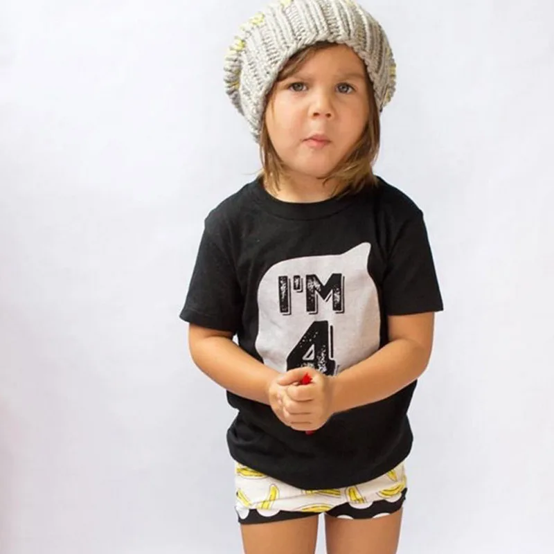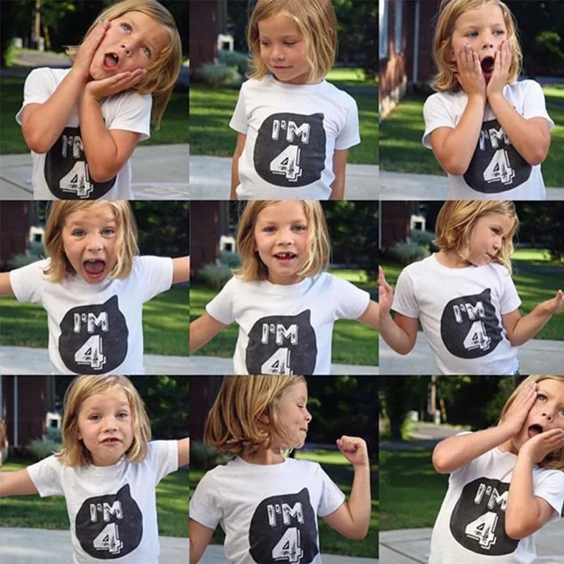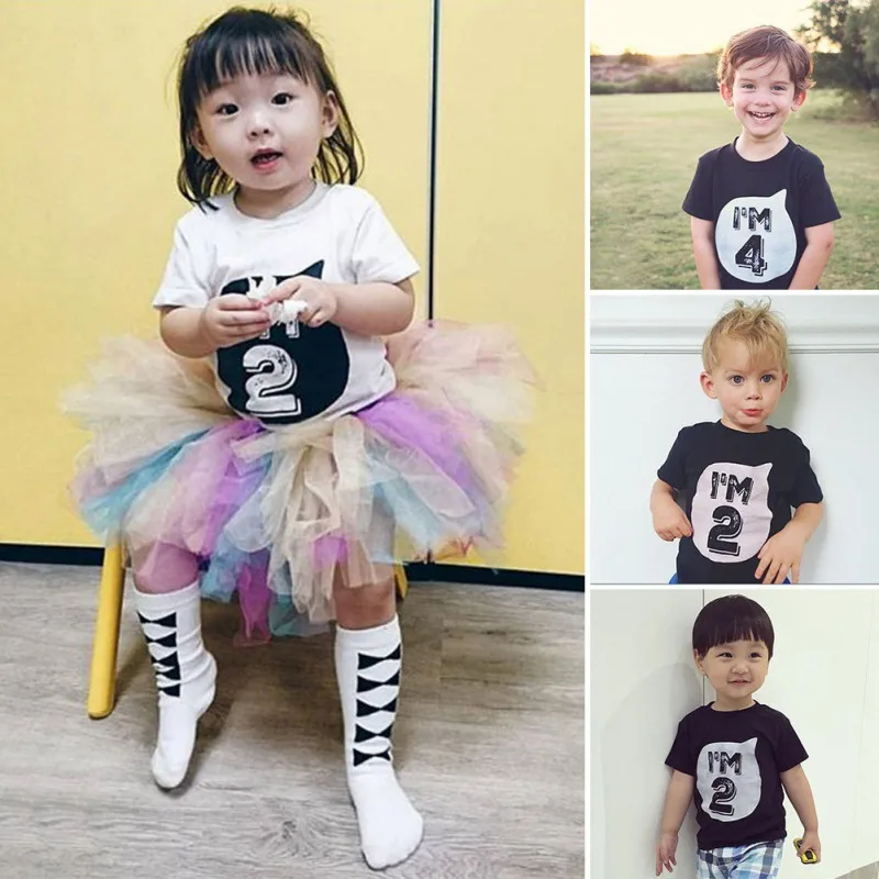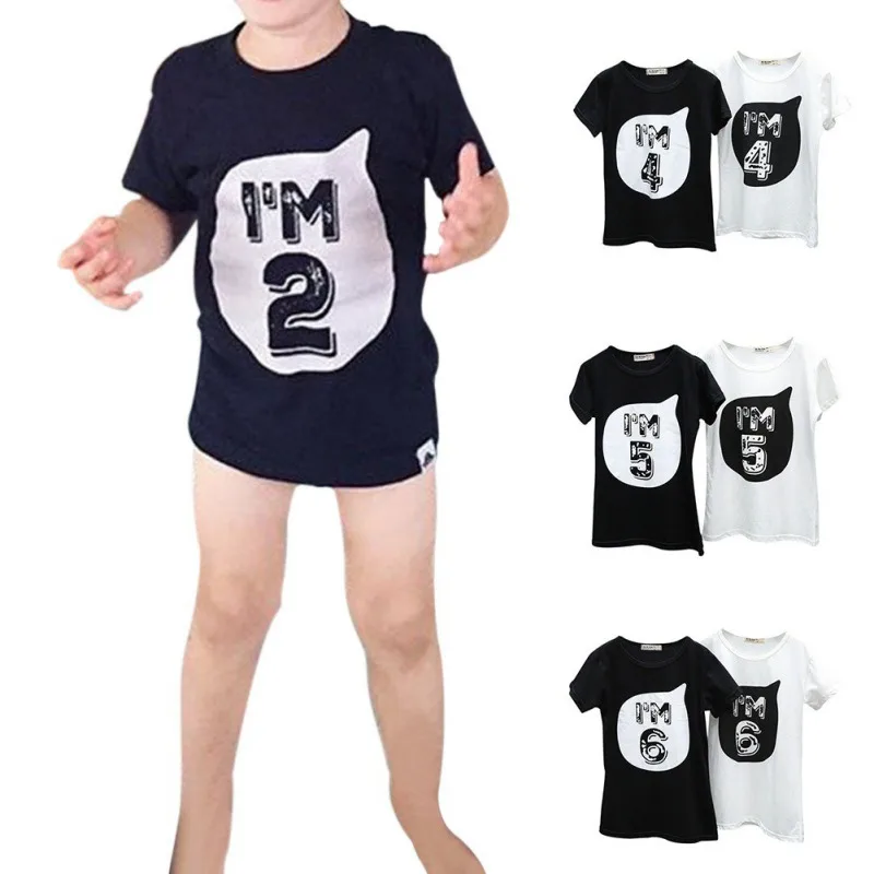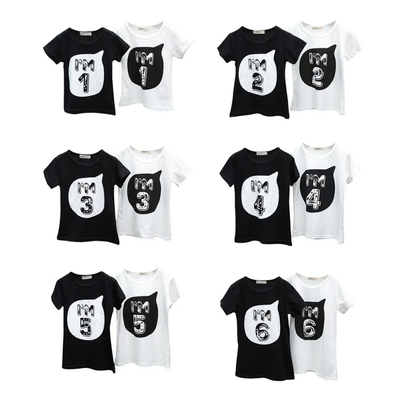 Home » » Children's Clothing » Boys Clothing » Tops & Tees » 2017 0-6Y Baby Boys Girls T-shirt Children Letter Birthday Age Printed Black White Noir Cotton Blends Summer Shirts Top Tees