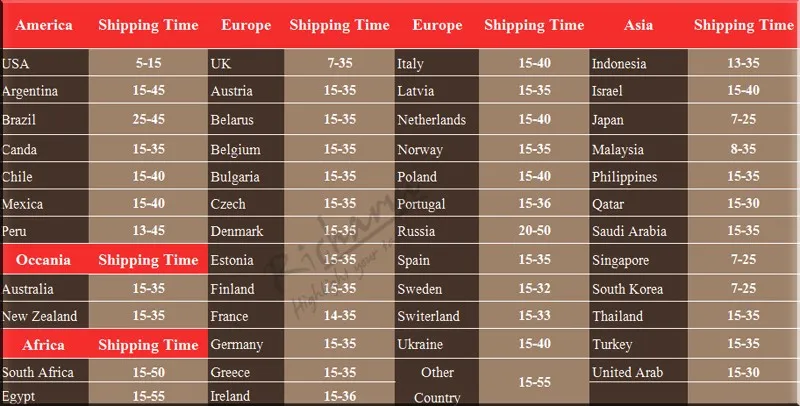 3. Shipping time usually takes about 12-35 business days if no delay at post office and custom by China post airmail.