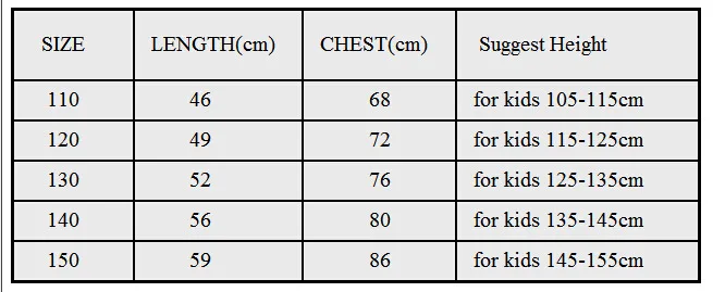 Size: 110-120-130-140-150
