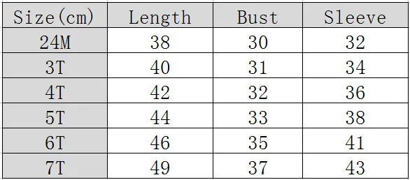 Size Chart,it has 1-2 cm error Product Size Height Length Bust Age 3T 90cm 39cm 56cm 2 years 4T 100cm 42cm 60cm 2-3 years 5T 110cm 45cm 64cm 3-4 years 6T 120cm 48cm 68cm 5-6 years 7T 130cm 51cm 72cm … Read More