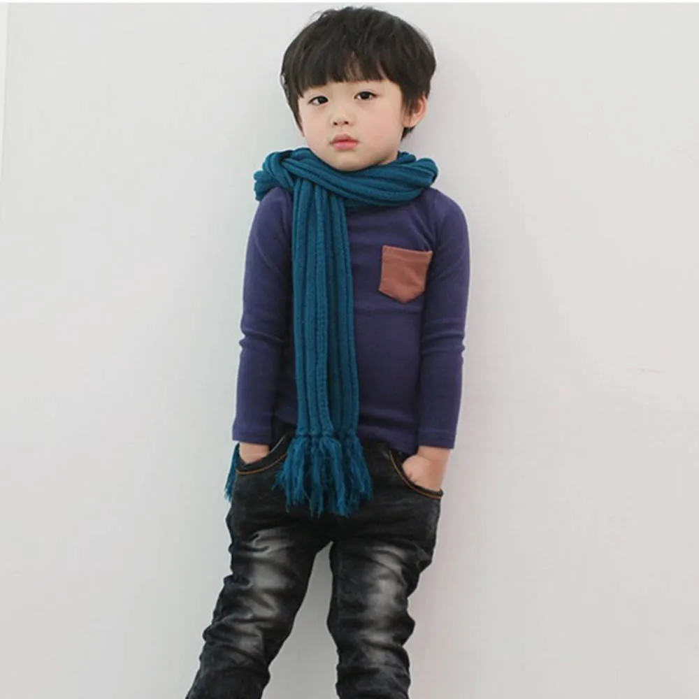 Fashion Toddler Baby Long Sleeve Crewneck T-shirt Pocket Deco Boys Girls Shirt Blouse Tops Clothes