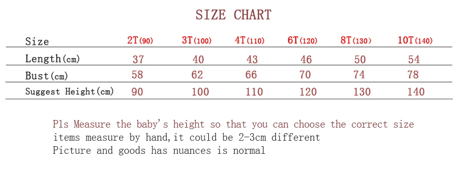 Size/Age Suggest Height Length Chest Width *2 Sleeve Length cm cm cm cm 100/2T 90-100 39 cm 28 cm 11 cm 110/3T 100-110 42 cm 31 cm 11 cm 120/4T 110-120 45 cm 33 cm 12 cm 130/6T 120-130 48 … Read More