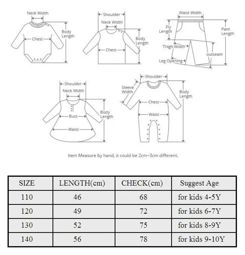 Size Length Bust*2 Suggest Ages Size number