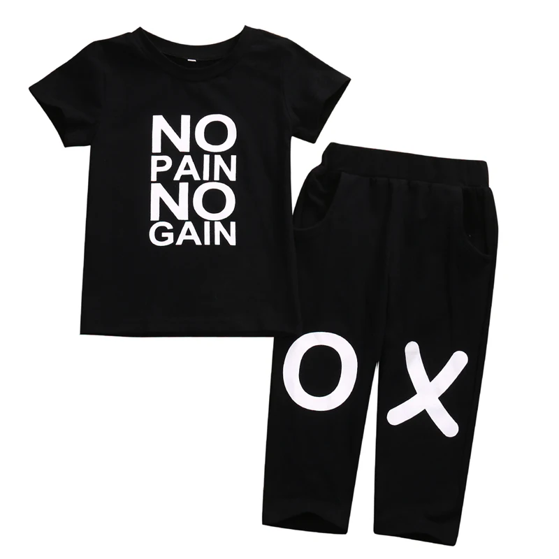 Toddler Kids Baby Boy Clothes Set Outfits Clothes No pain no gain T-shirt Top Short Sleeve Pants 2pcs Boys Clothing Set