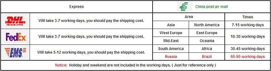 We offer 4 shipping method as below: