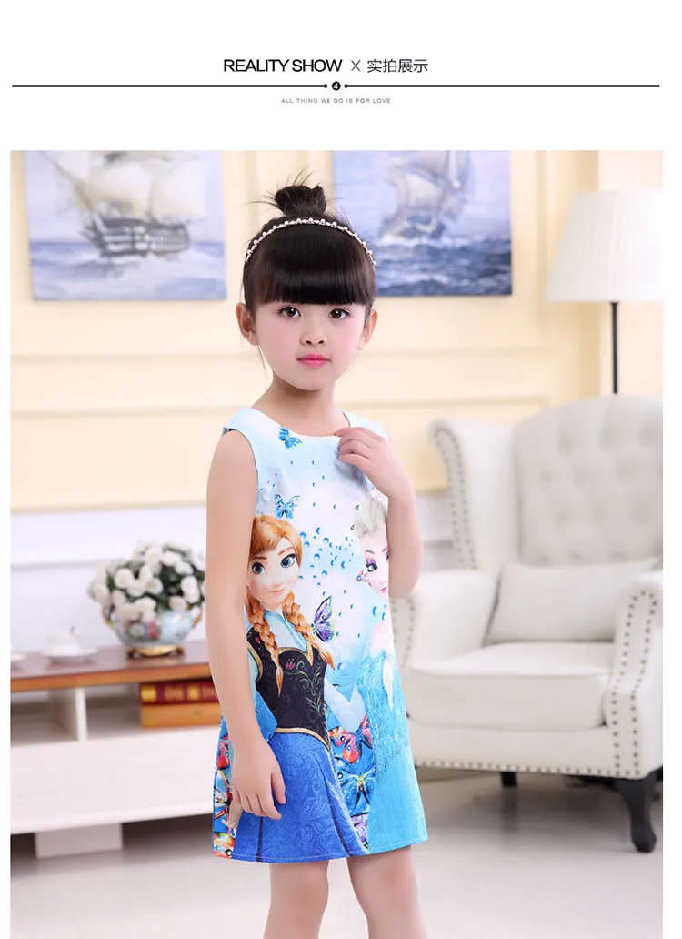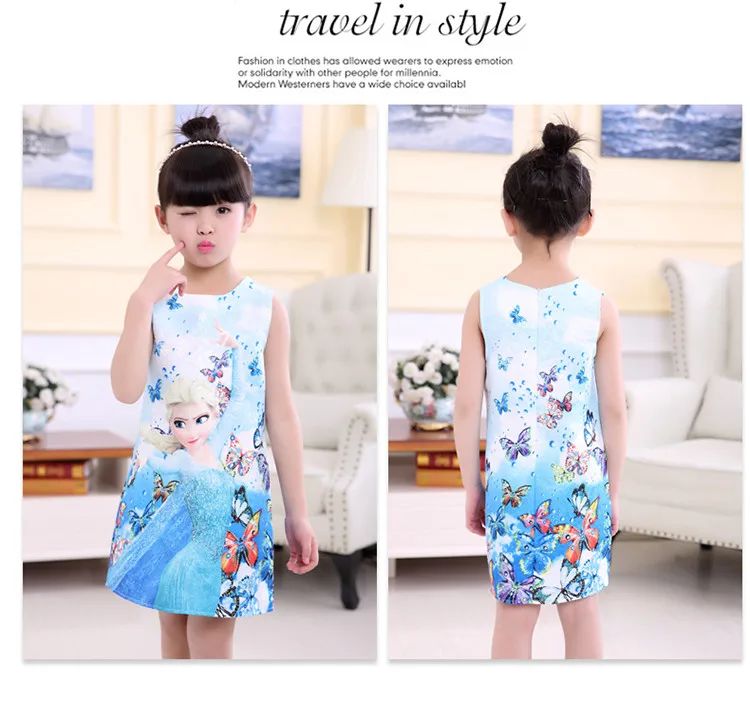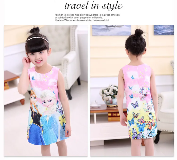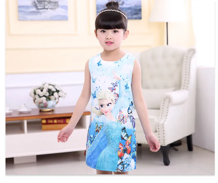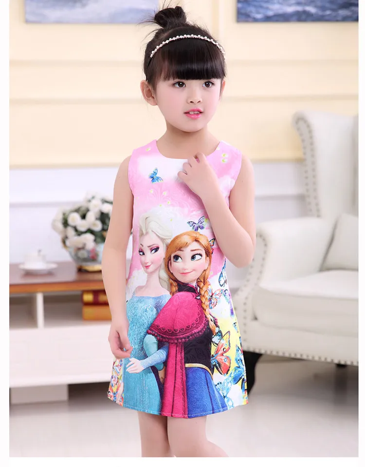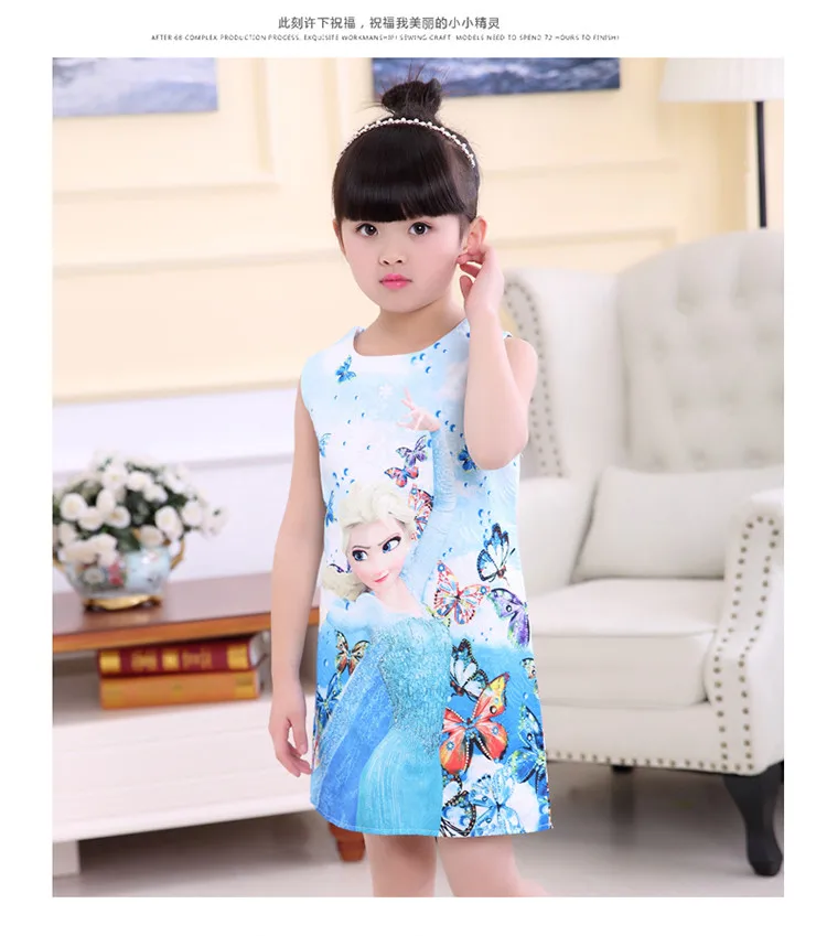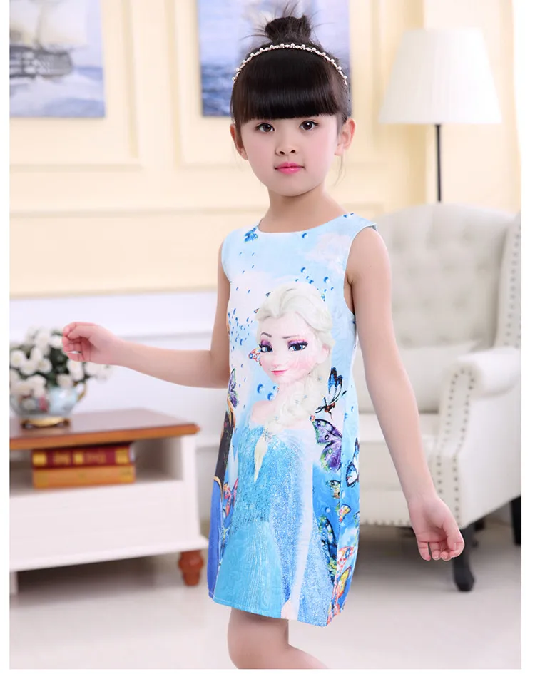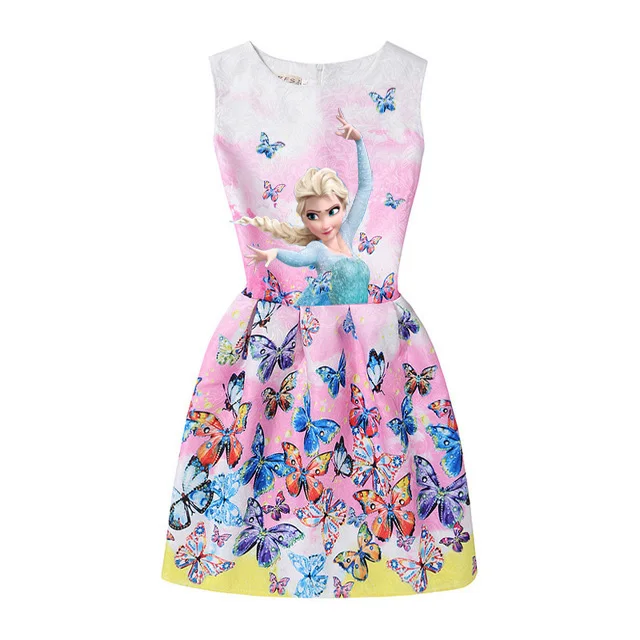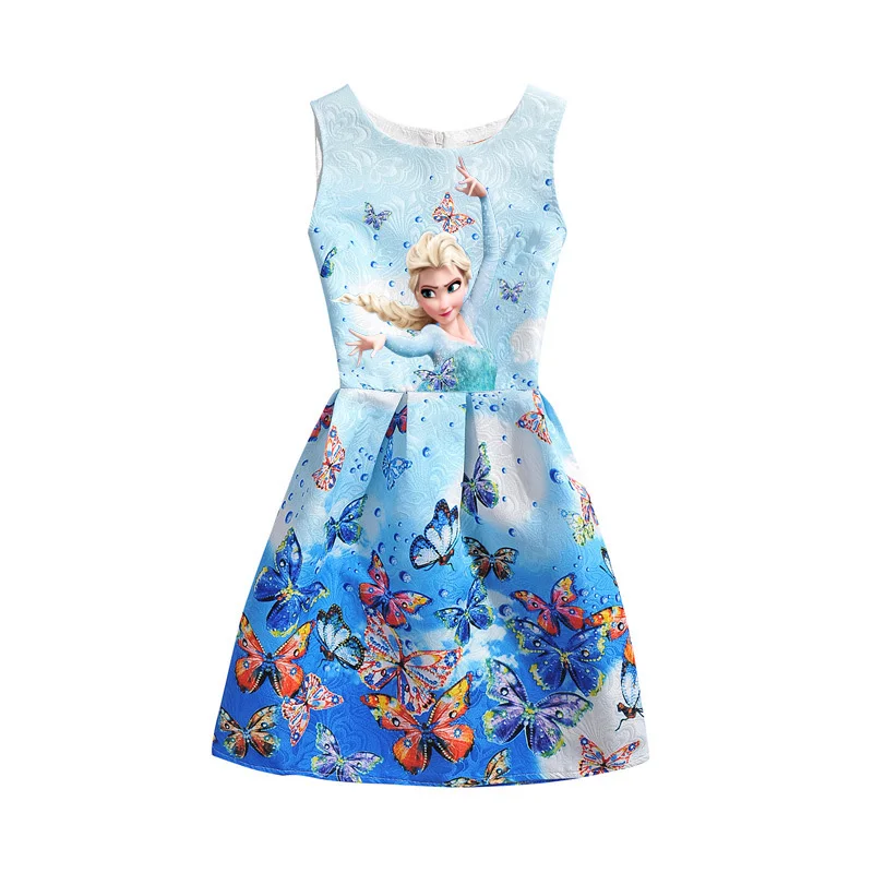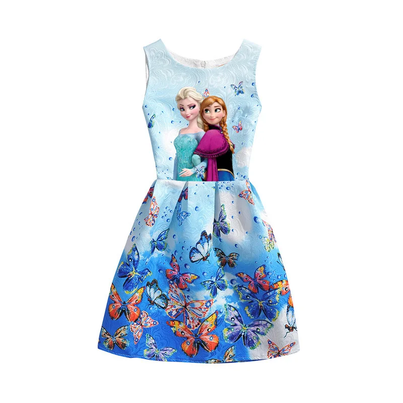 2017 Summer Style Girls Elsa Anna Princess Dresses Girl Butterfly Printed Sleeveless Formal Girl Dresses Teenagers Party Dress