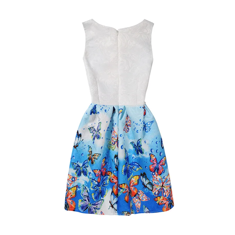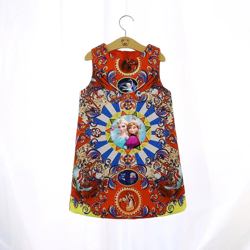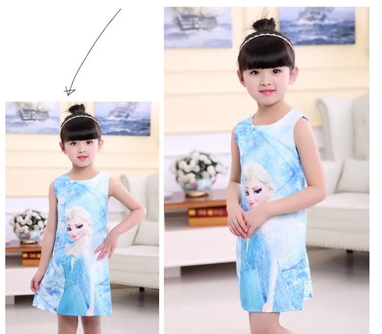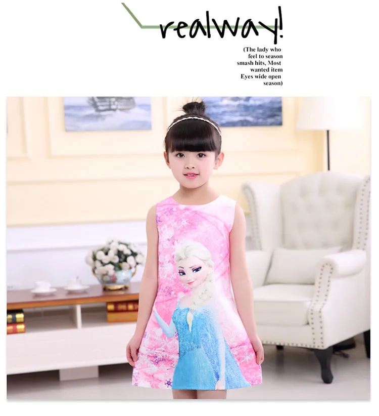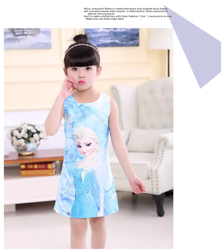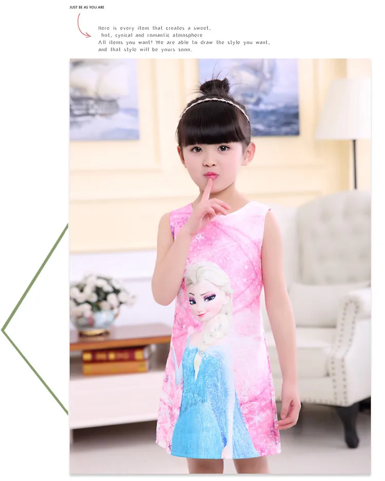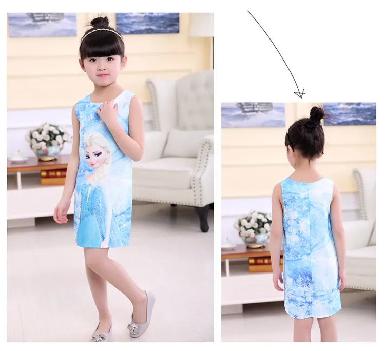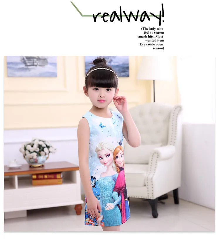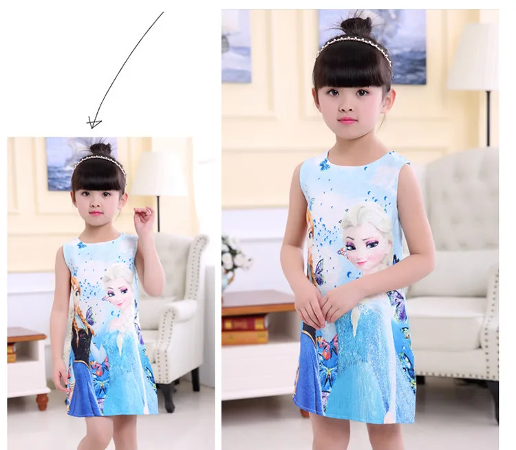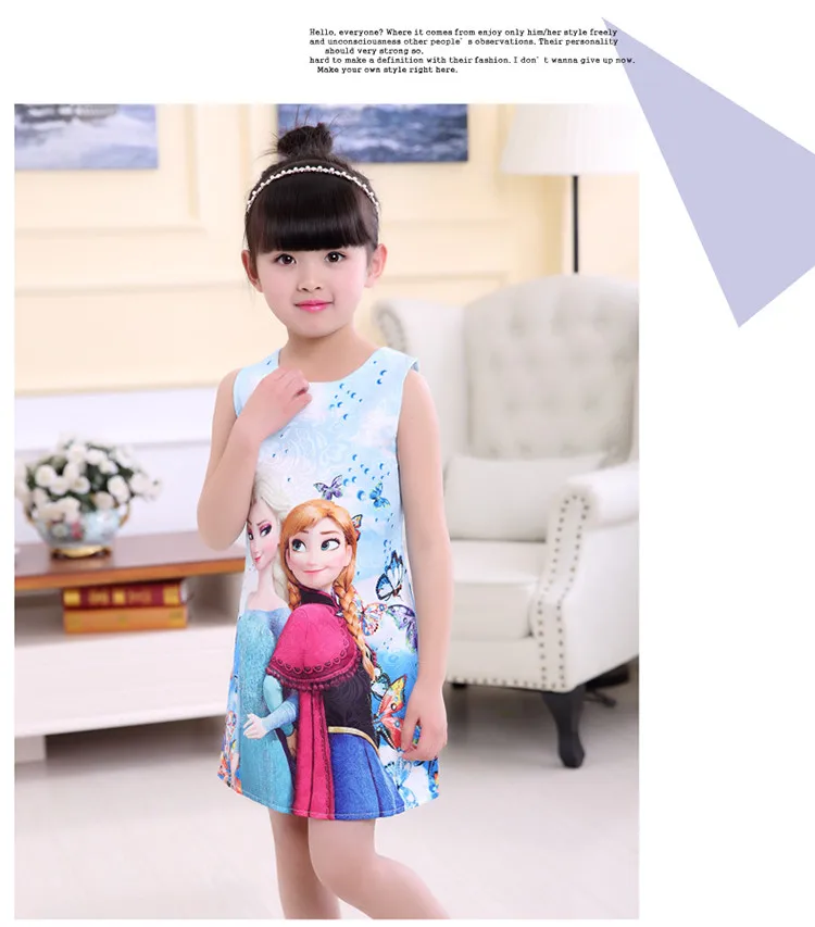 2017 Summer Style Girls Elsa Anna Princess Dresses Girl Butterfly Printed Sleeveless Formal Girl Dresses Teenagers Party Dress