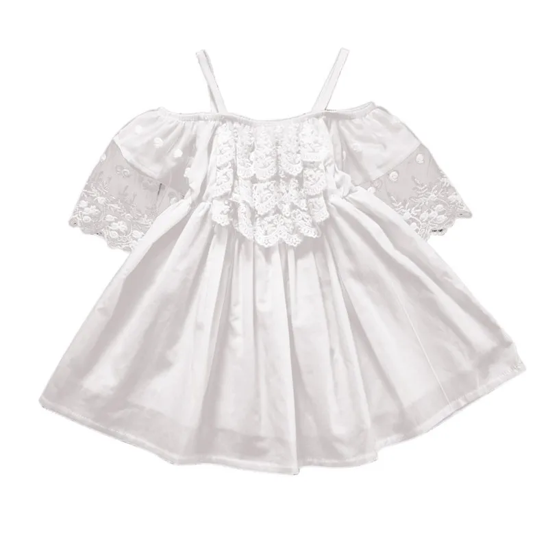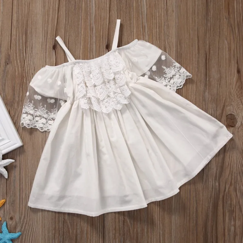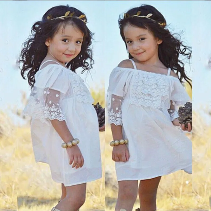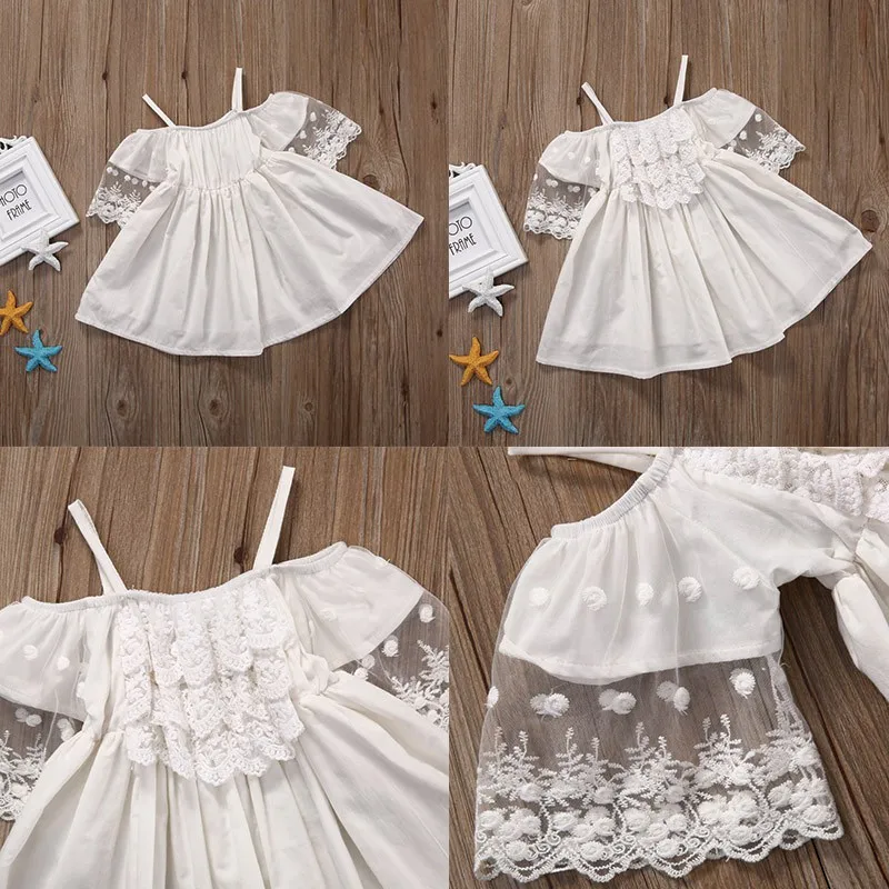 100% Brand New and High Quality Color: White material: Lace+Cotton Size: 2-7 Years Occasion: Casual/beach Style: Sexy Off-shoulder style Casual Summer Dress Beach Dress Size Chart Size—-Tops length—— Bust*2—— waist*2—– Age Recommended 2T/90 44cm/17.32″ 26cm/10.23″ 22cm/8.66″ 2-3Y 3T/100 48cm/18.89″ 27cm/10.62″ 23cm/9.05″ 3-4Y 4T/110 52cm/20.47″ 28cm/11.02″ 24cm/9.44″ 4-5Y 5T/120 56cm/22.04″ 29cm/11.41″ 25cm/9.84″ 5-6Y 6T/130 60cm/23.62″ 30cm/11.81″ 26cm/10.23″ 6-7Y Size are reference only. There will be 1-2cm difference because of manual measurement. Package include: 1 x Kids Dress