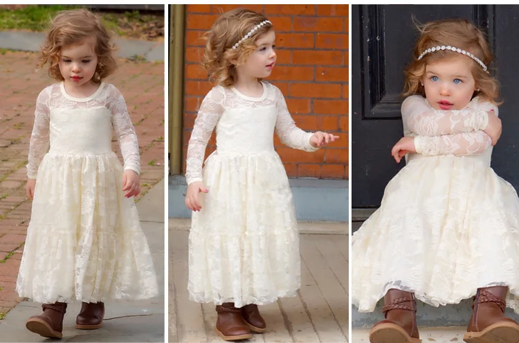 Home » » Children's Clothing » Girls Clothing » Girls Dresses » Girl Lace Long Dress Flower For Age 2-12 Baby Kids Princess Wedding Prom Christmas Party Gift White/Cream Big Bow Sweet Clothing
