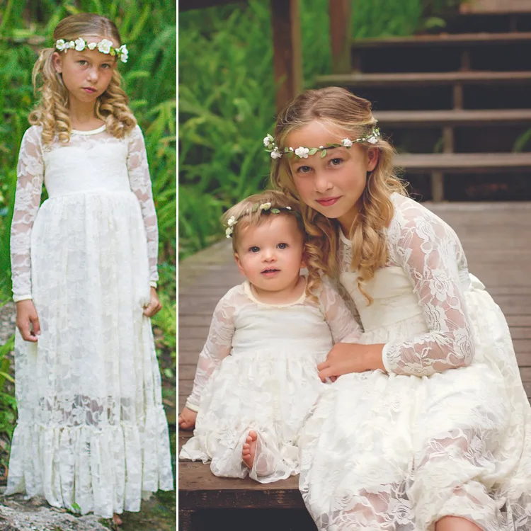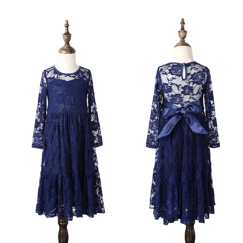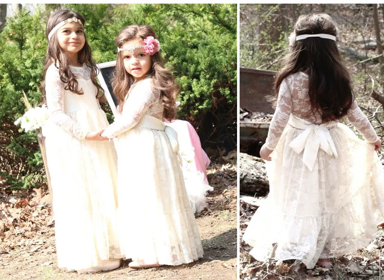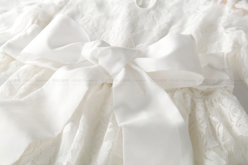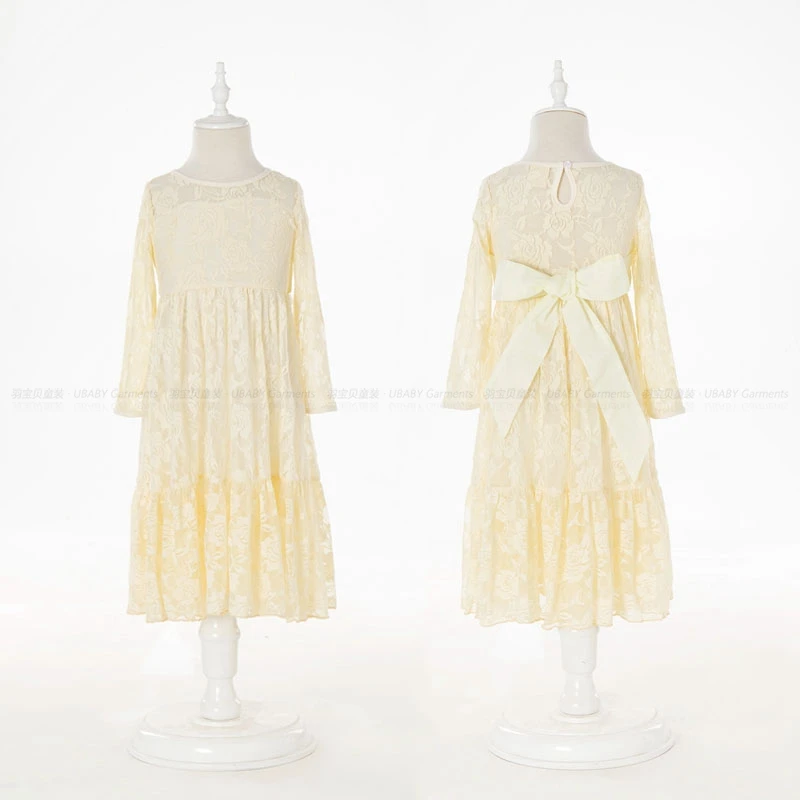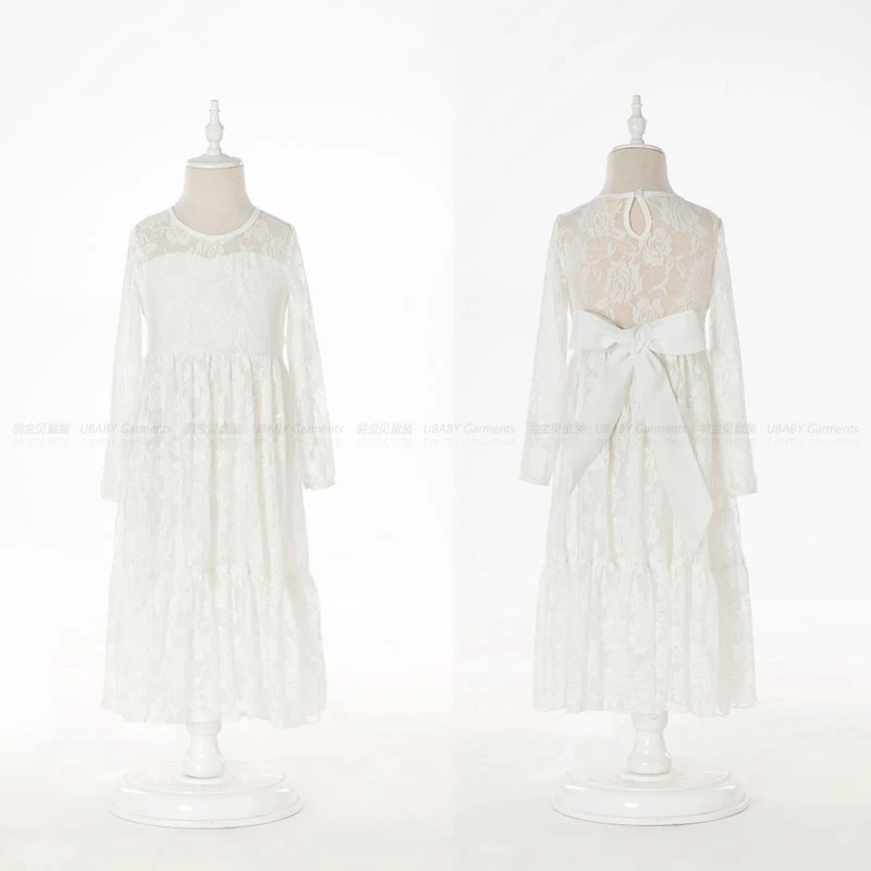Girl Lace Long Dress Flower For Age 2-12 Baby Kids Princess Wedding Prom Christmas Party Gift White/Cream Big Bow Sweet Clothing