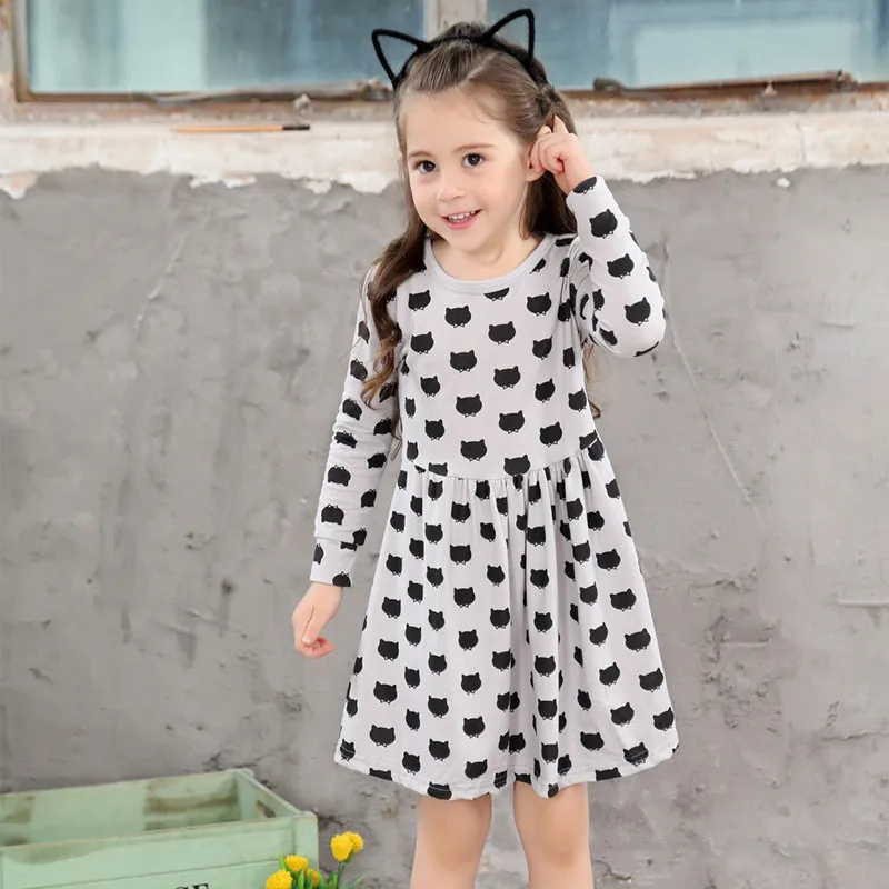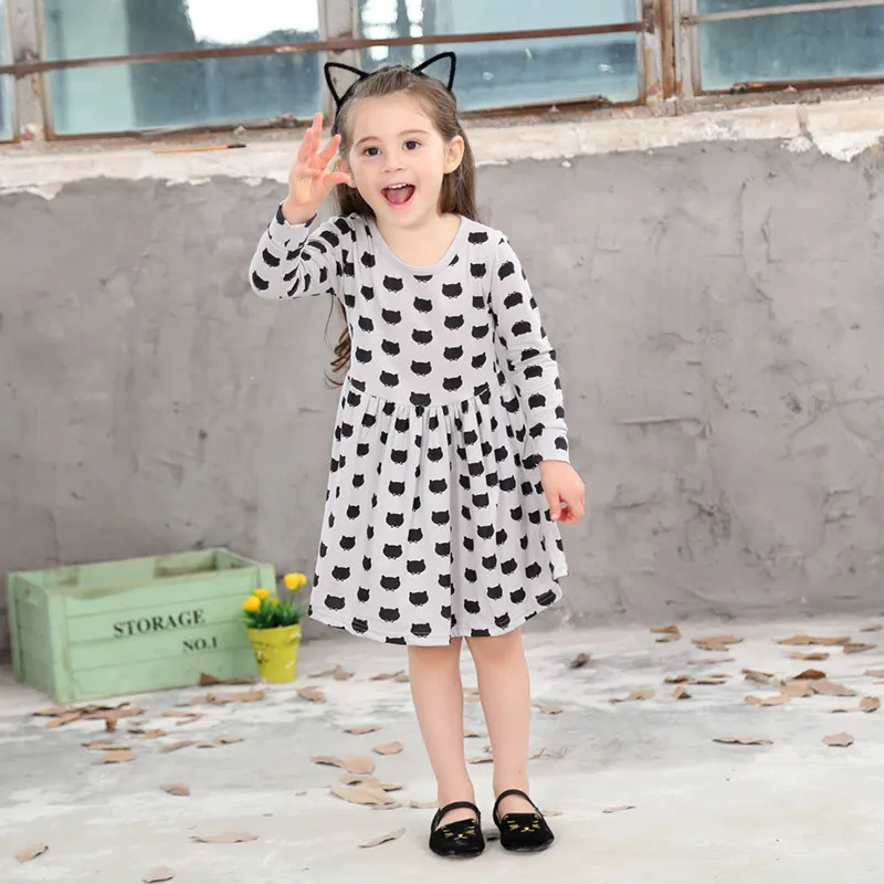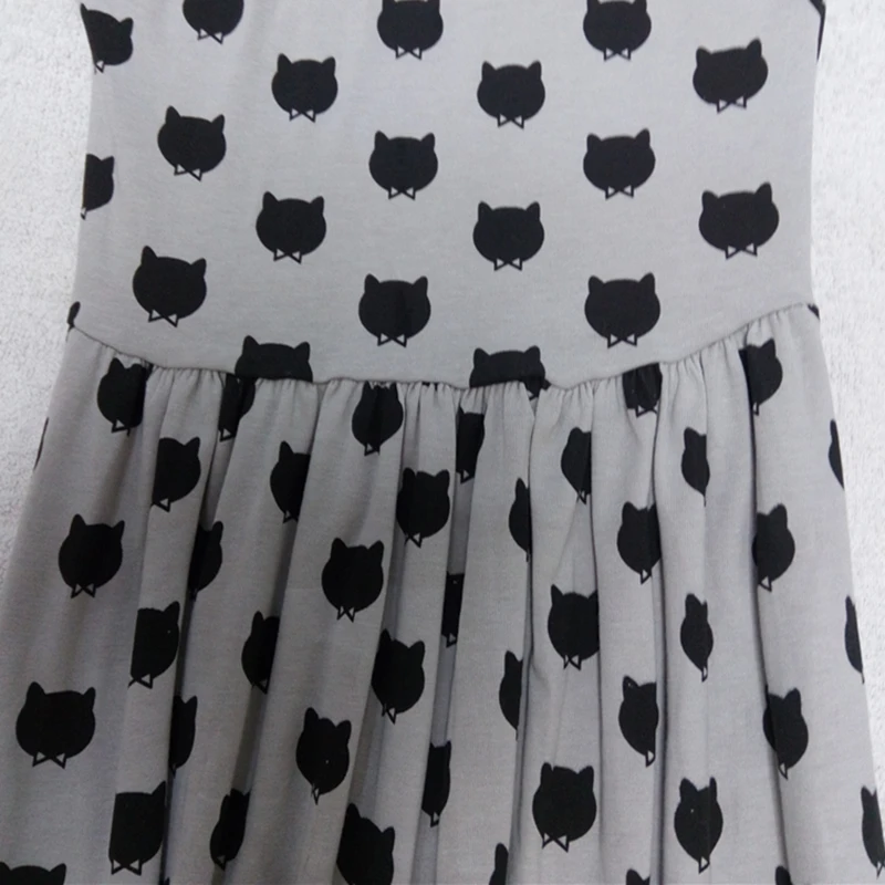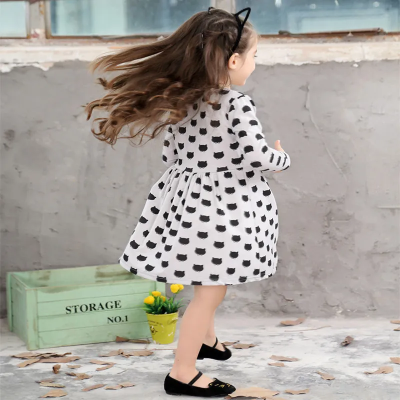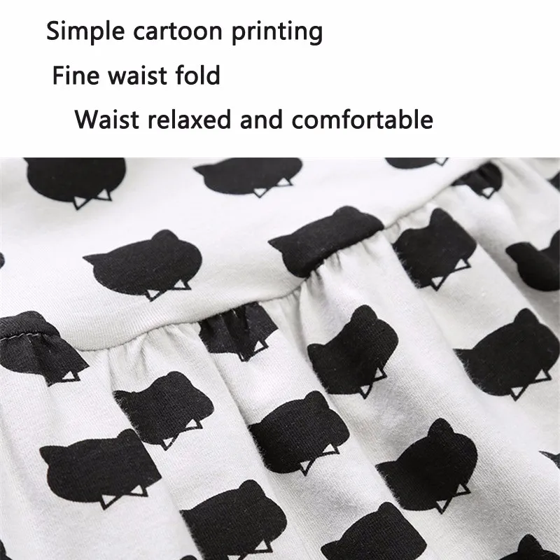 Hat &new European cartoon long sleeved black stamp elastic pleated Zou comfortable dress stitching girl dress Cartoon cat dress