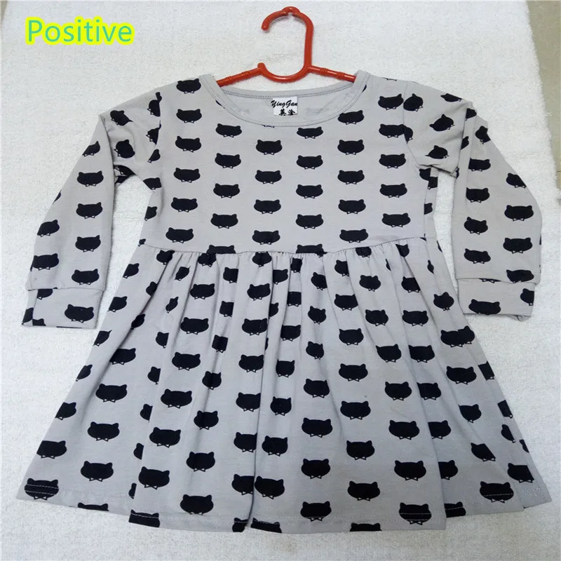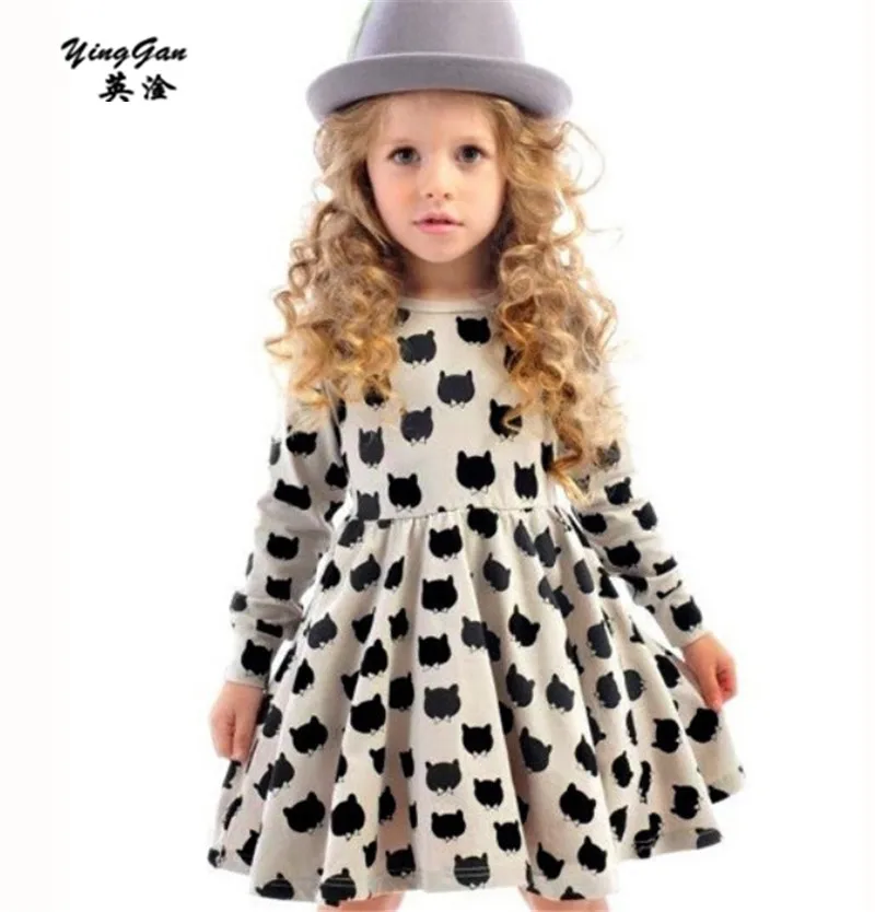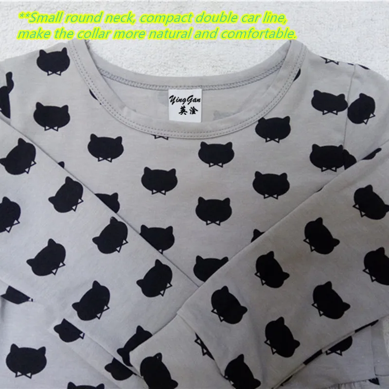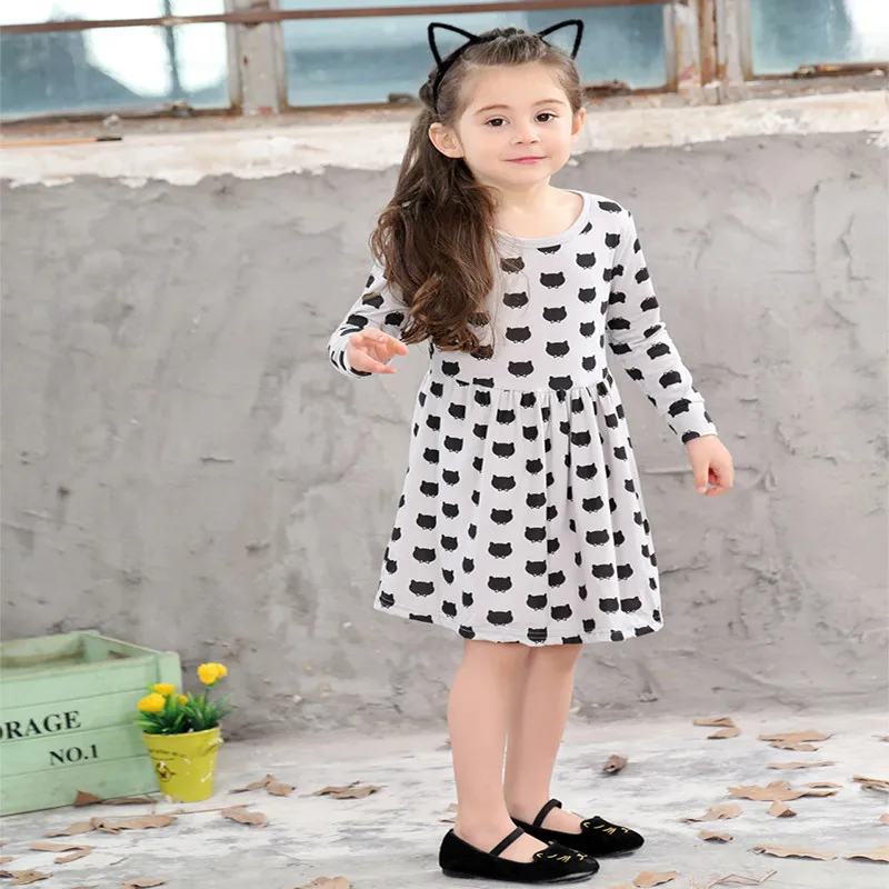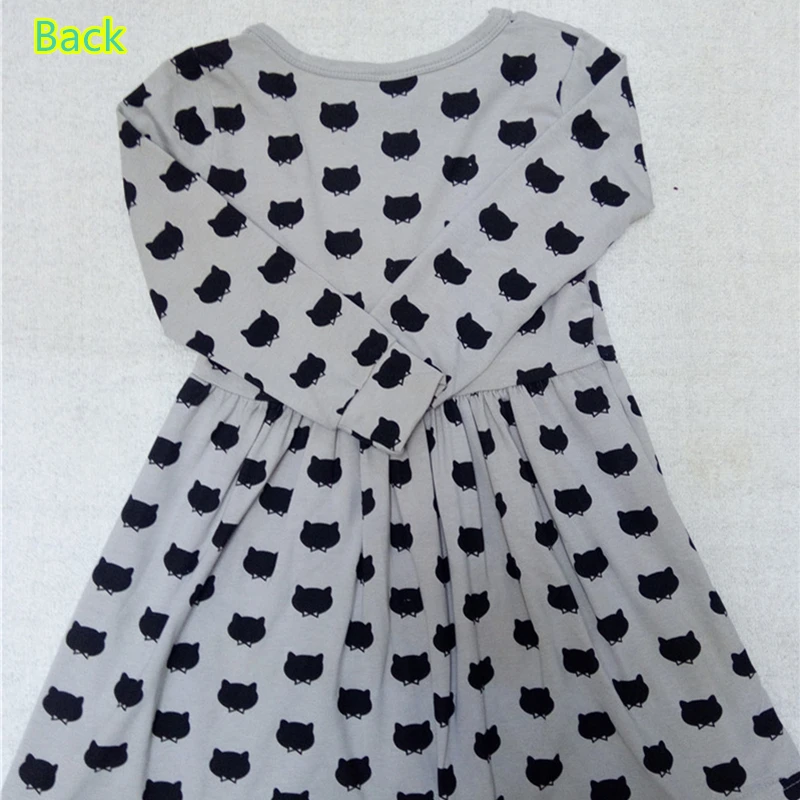 Hat &new European cartoon long sleeved black stamp elastic pleated Zou comfortable dress stitching girl dress Cartoon cat dress
