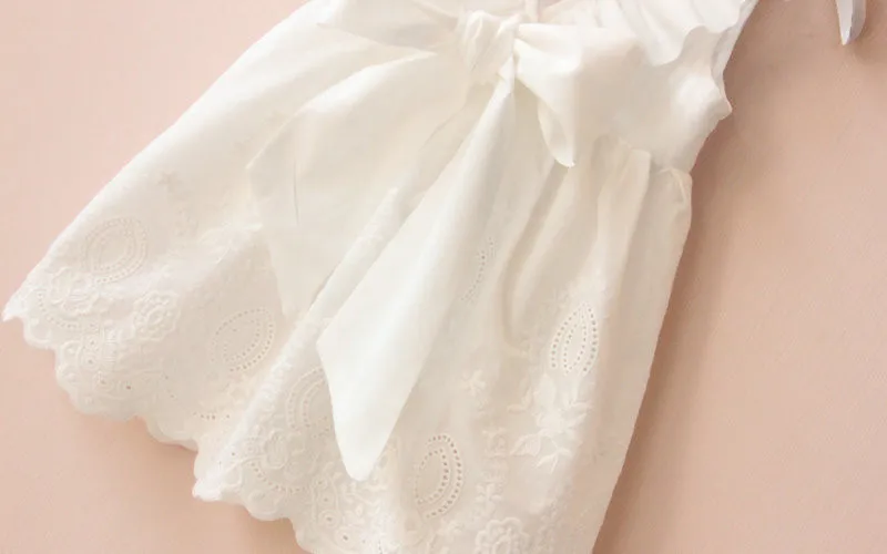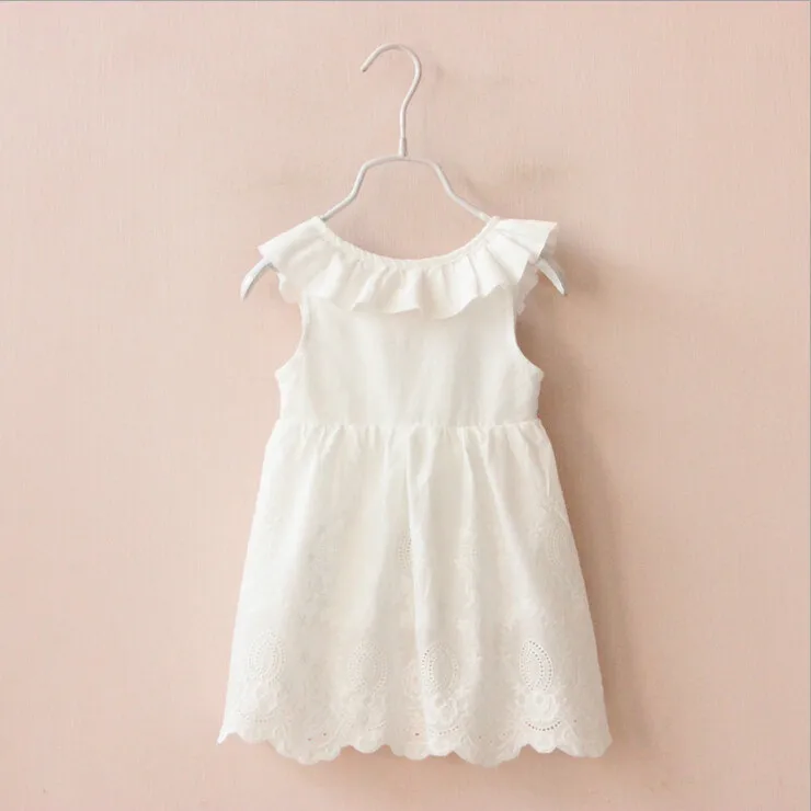 Retail Girl Dresses Solid White Girls Dresses 2017 Summer Style Children’s Clothing Dresses For Girl Vestido Infant Girl Clothes