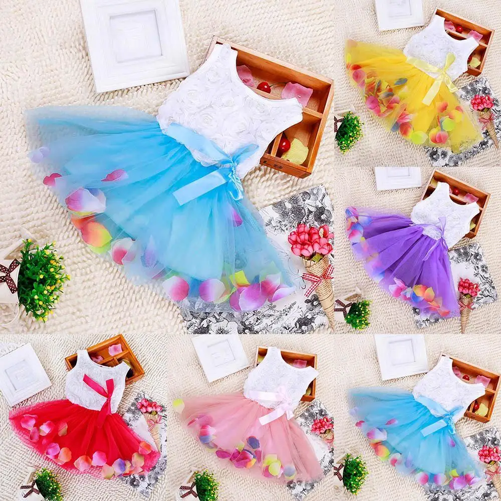 Baby Kids Girl Toddler Princess Pageant Party Tutu Dress Lace Bow Flower Dresses