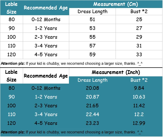 – Sizes: 80/90/100/110/120cm Size Chart: