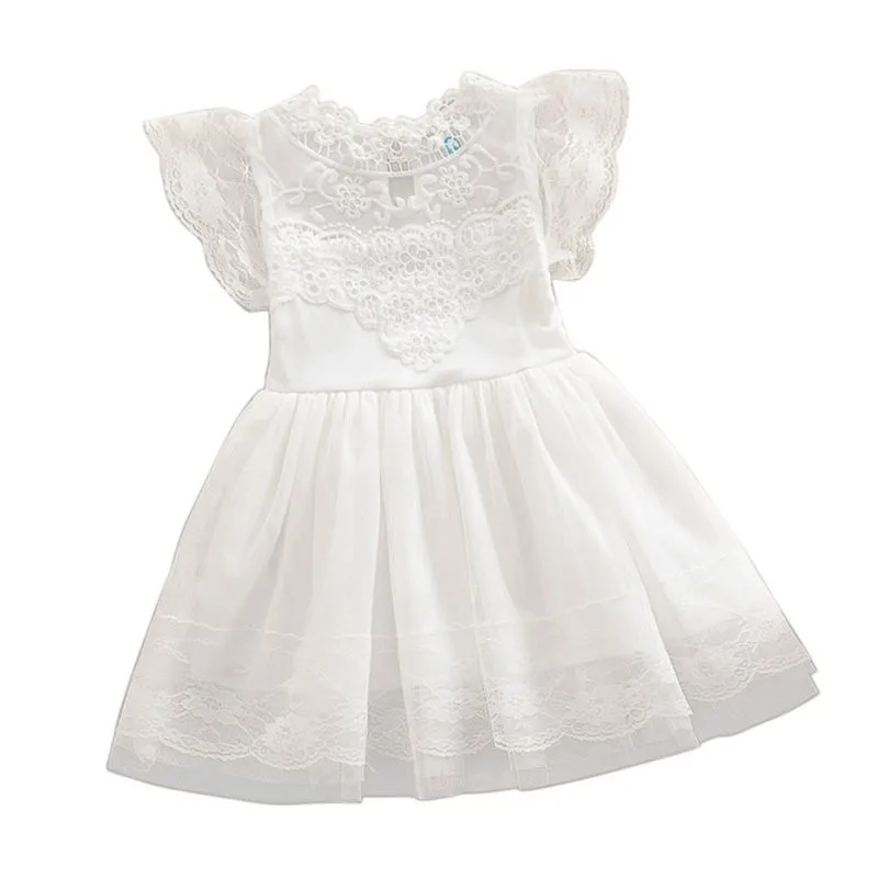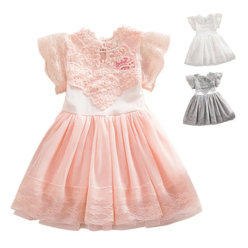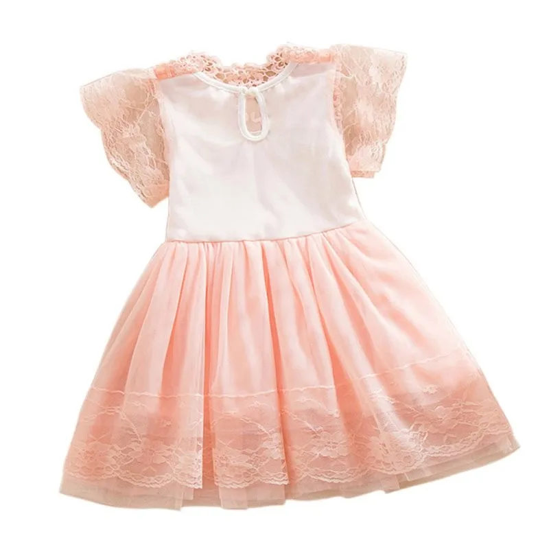 Summer Toddler Girls Baby Kids Lace Tulle Dress Short Sleeve Floral Princess Tutu Dress 2-7Y
