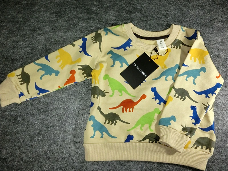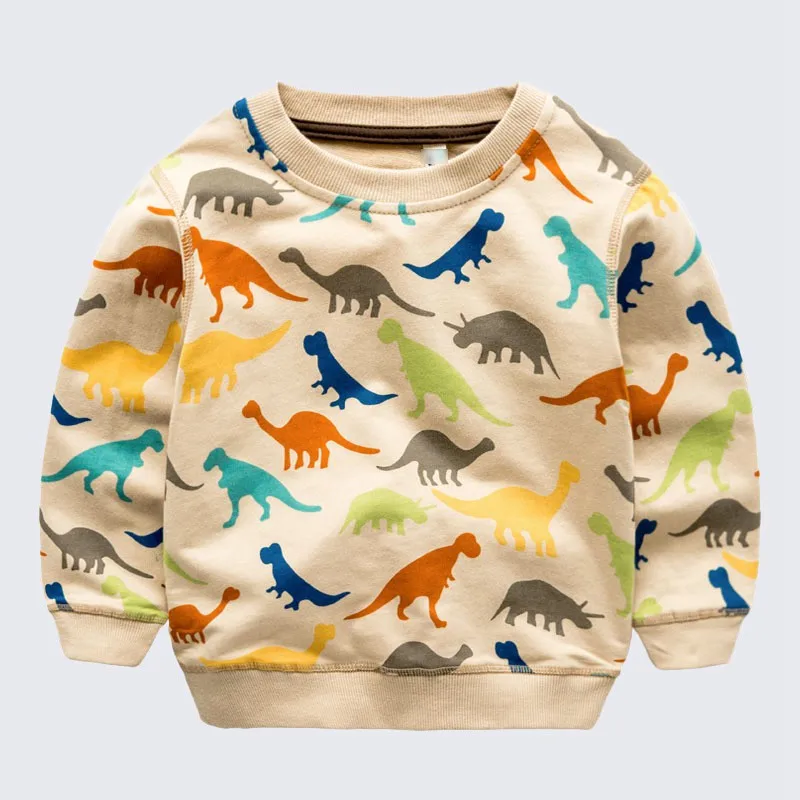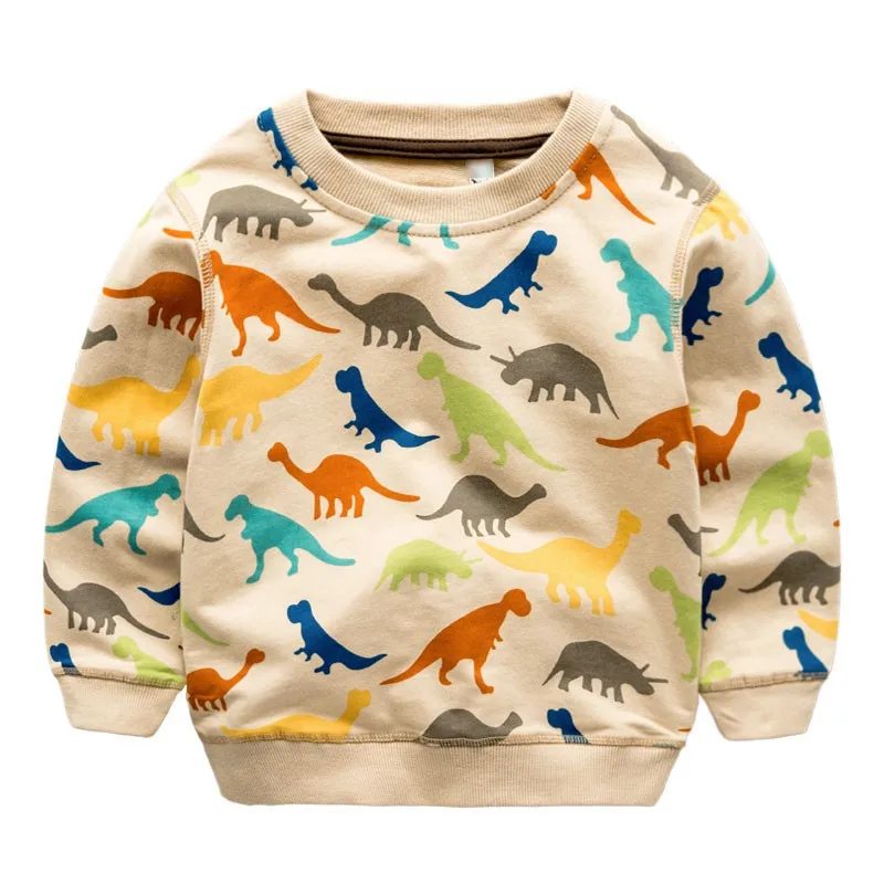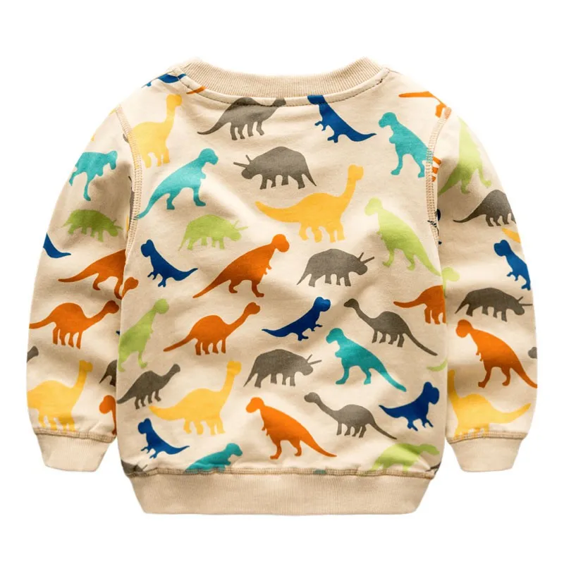 80-140cm Colorful Kid Dinosaur Infant Girls Sweatshirts Kids Boys Hoodies Animal Long Sleeve Cotton Children Boys T-shirt