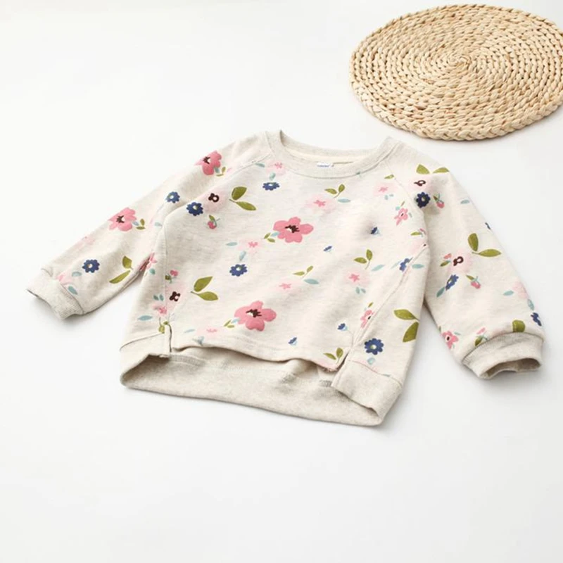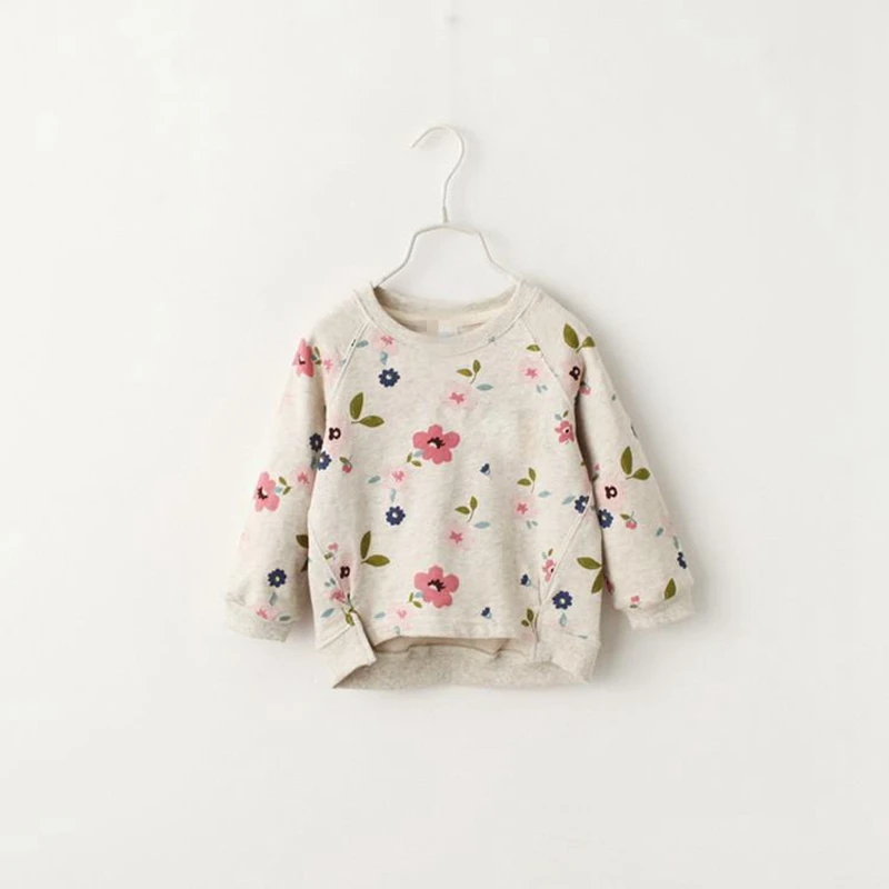 Girls print flower sweatshirts Long sleeve shirt with Corsage 2016 new arrival fashion Autumn kids children clothing sweatshirt