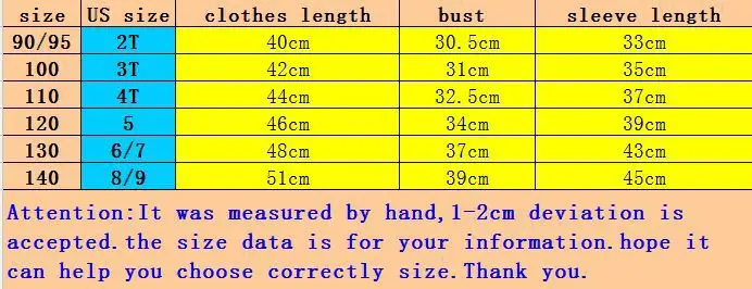 Size: 90(2T)-100(3T)-110(4T)-120(5)-130(6/7)-140(8)