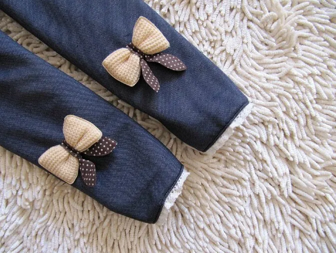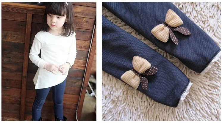 A very high-quality products * warm pants with fleece velvet fabric High quality without distortion Parents who must carefully compare the quality of long pants .Do not look at price and standard code . Factory Outlet , no part of them , the lowest price and best quality kids girls jean bow pants, cotton cashmere pants, elastic waist legging warm pants winter spring retail Color : Dark blue ,Black SIZE :100, 110, 120, 130, 140 SIZE Pants lenght Age 100 58cm 3T 110 64cm 4T 120 69cm 5-6T 130 74cm 8T 140 80cm 9-10T