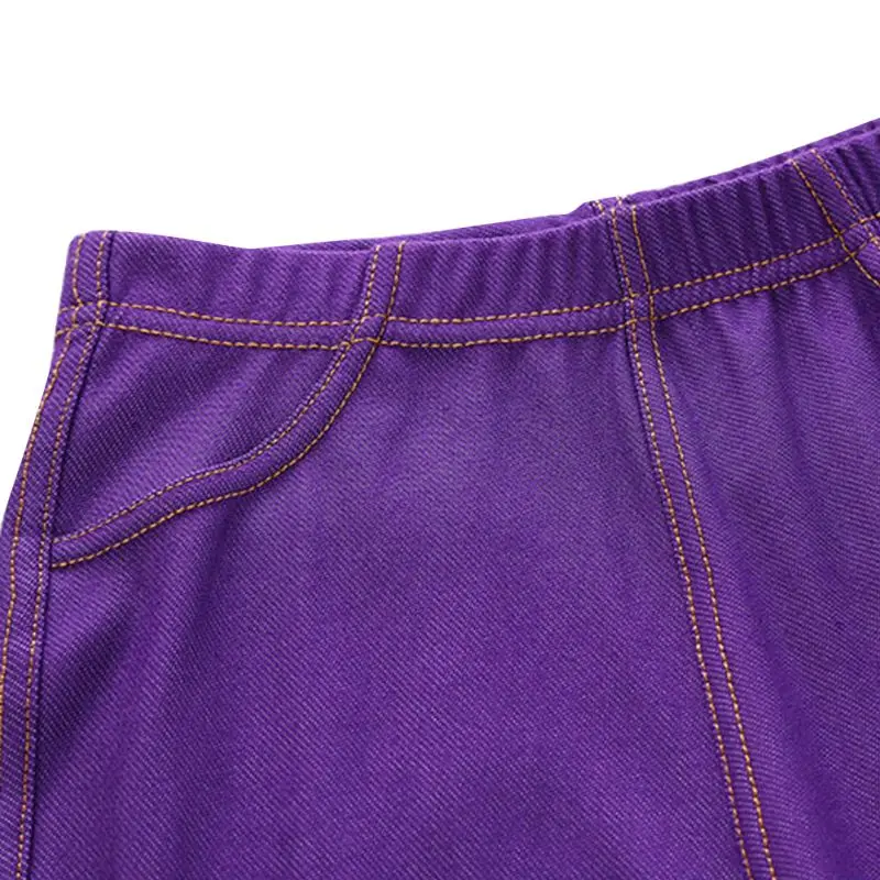 Spring Summer Fashion Girls Pencil knit Imitation denim fabric Jeans Kids Candy Colore Mid Waist Full Length pants