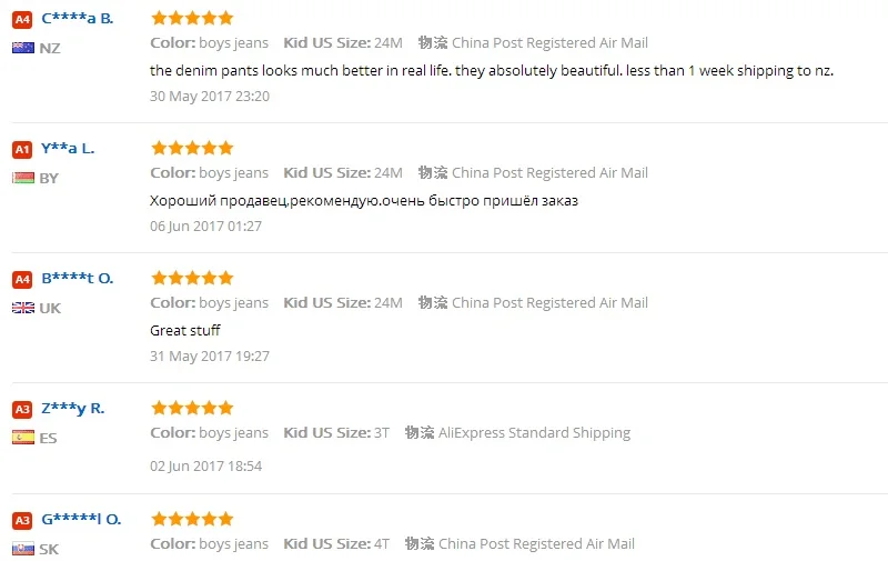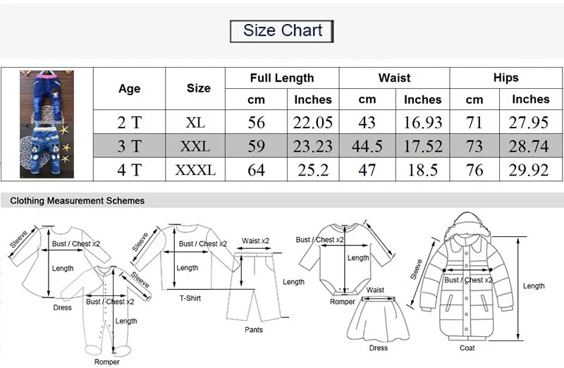 Click to see more discount 2017 New Cartoon Printed Baby Boys Denim Pants Elastic Waist Casual Toddler Kids Girls Trousers Children’s Jeans for 2-4 Years Description: Size:XL,XXL,XXXL Suit for gender:Boys,Girls Material : Cotton Jean Color:blue Age:2-4 years old Warm Tips: 1. Due to limitations in photography and the inevitable differences in monitor settings, the color of pictures showed may not be 100% the same with actual items. If you need in-kind real shoot of our products, please contact us freely. 2. Before payment, please double check your delivery information: contact name, address, zip code, phone numbers etc. P.S. If you are Russian Customers, please help us provide the full name. (given name+paternal name+surname) Buyer’s feedback