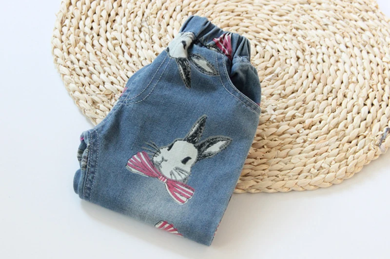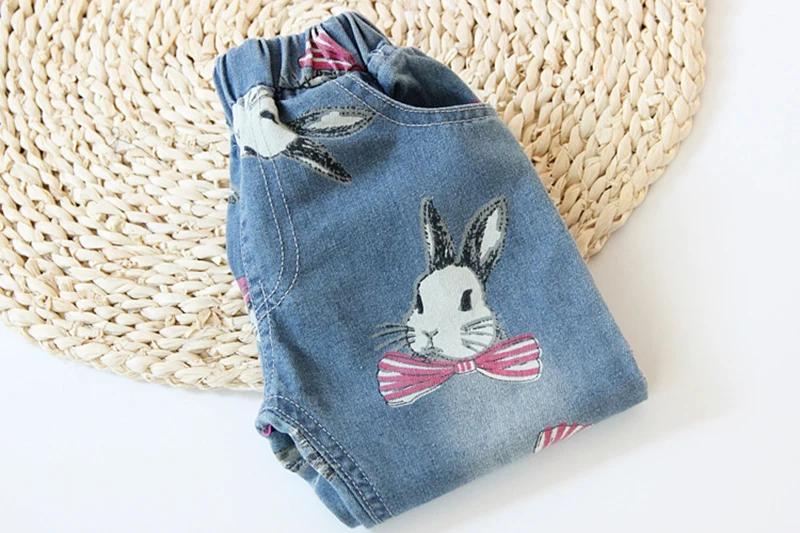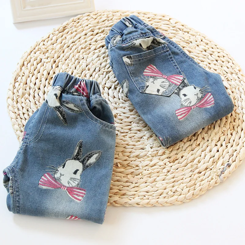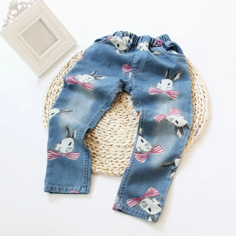 2017 New Fashion Girls Pants Casual Rabbit Print Jeans For Girls Fashion Kids Clothes Autumn Straight Pants