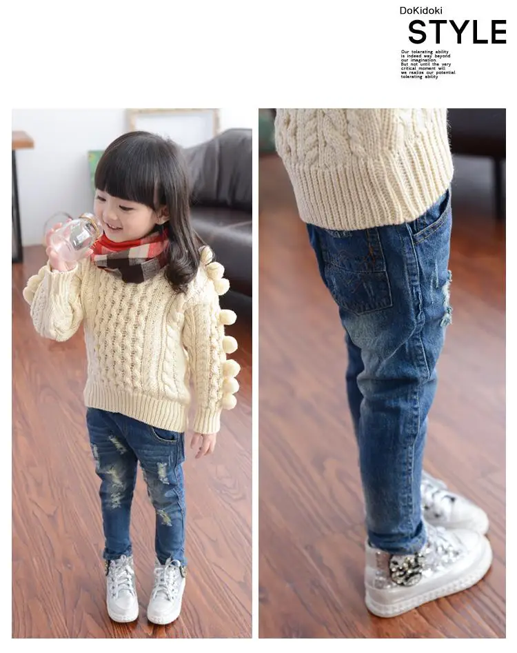2016 korean spring autumn style boy or girls jeans for kids all match broken cool washing old denim child pants