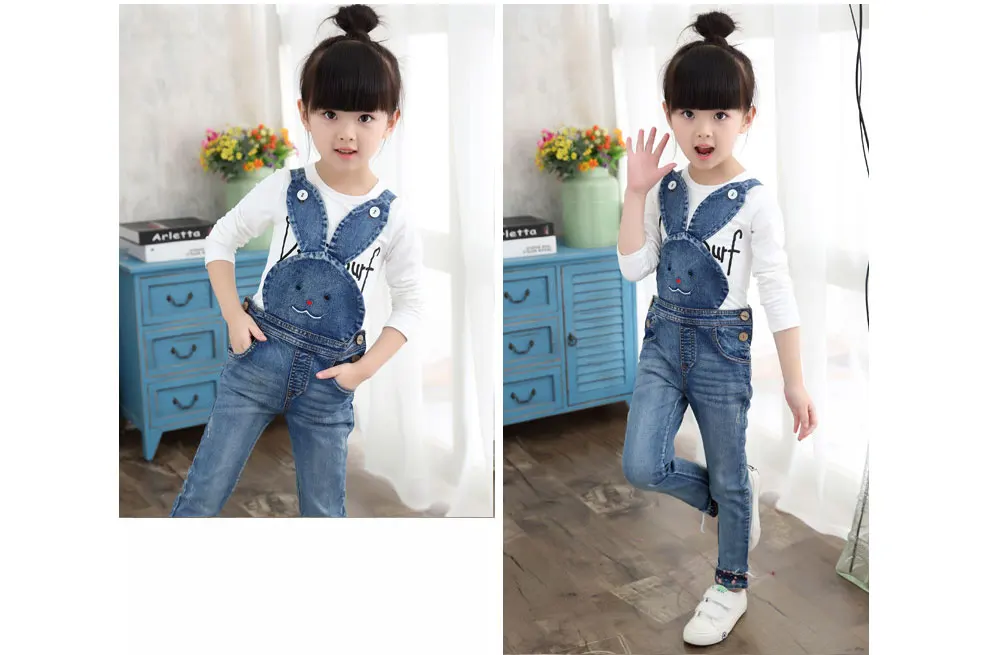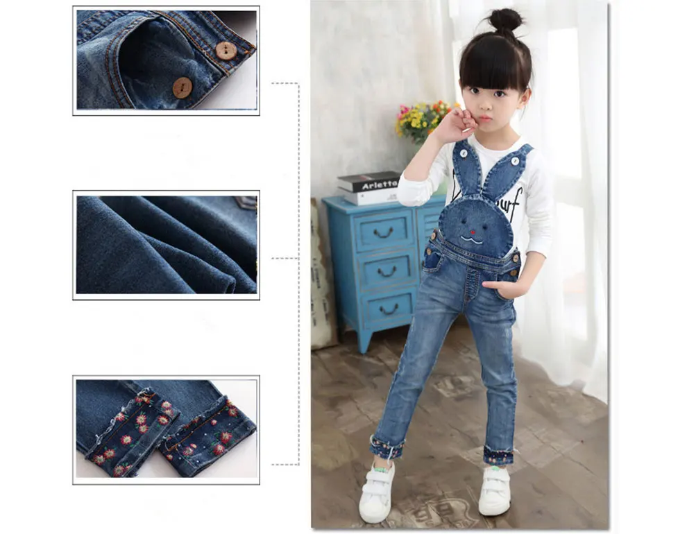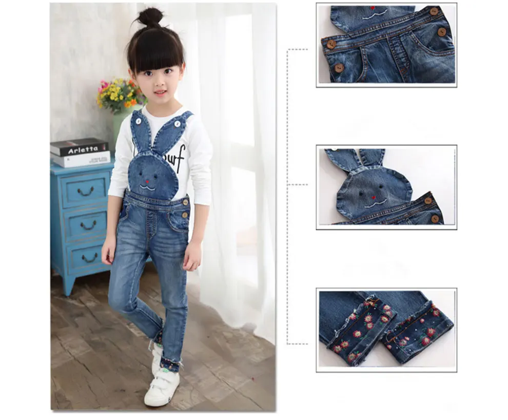 Baby Girls Overall 2017 New Brand Cute Rabbit Kids Girl Jeans Trousers Children Casual Animal Pattern High Pants Kid Clothes Hot