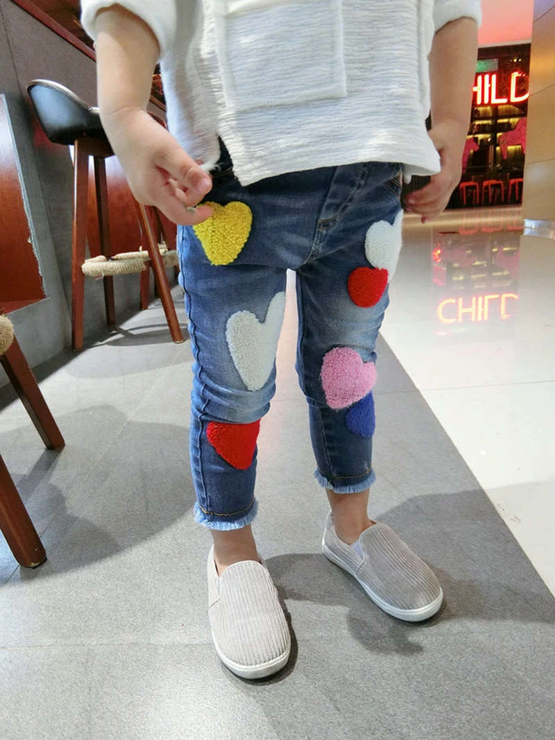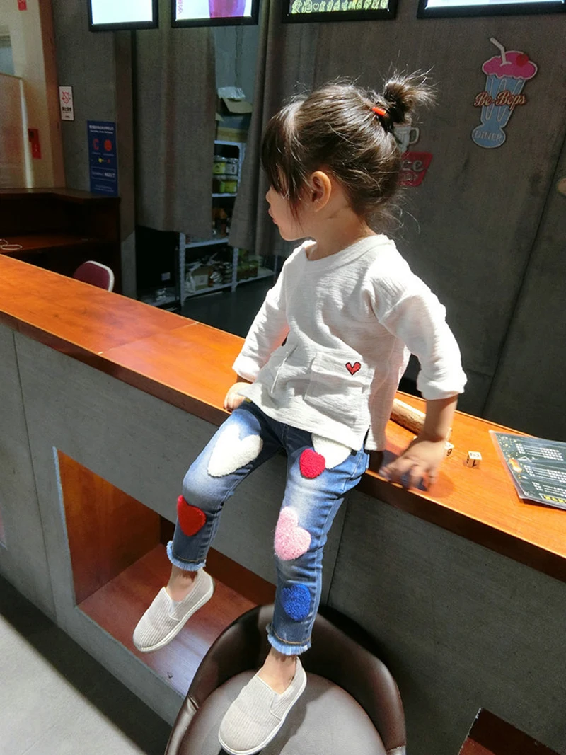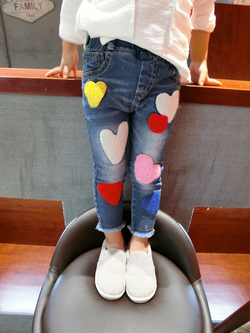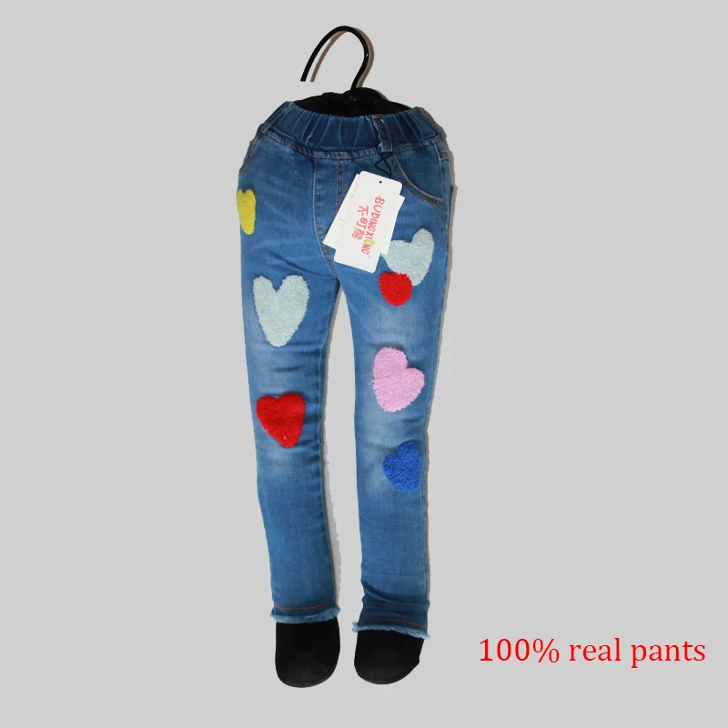 Size on lable: 2-3, 3-4, 4-5, 5-6, 6-7, 7-8 Fit Age: 3-8 years Season: Autumn, Spring Heart-print denim jeans. It is not skinny, it is loose jeans. Personally, it is not suitable for thin kids. The size of this jeans … Read More