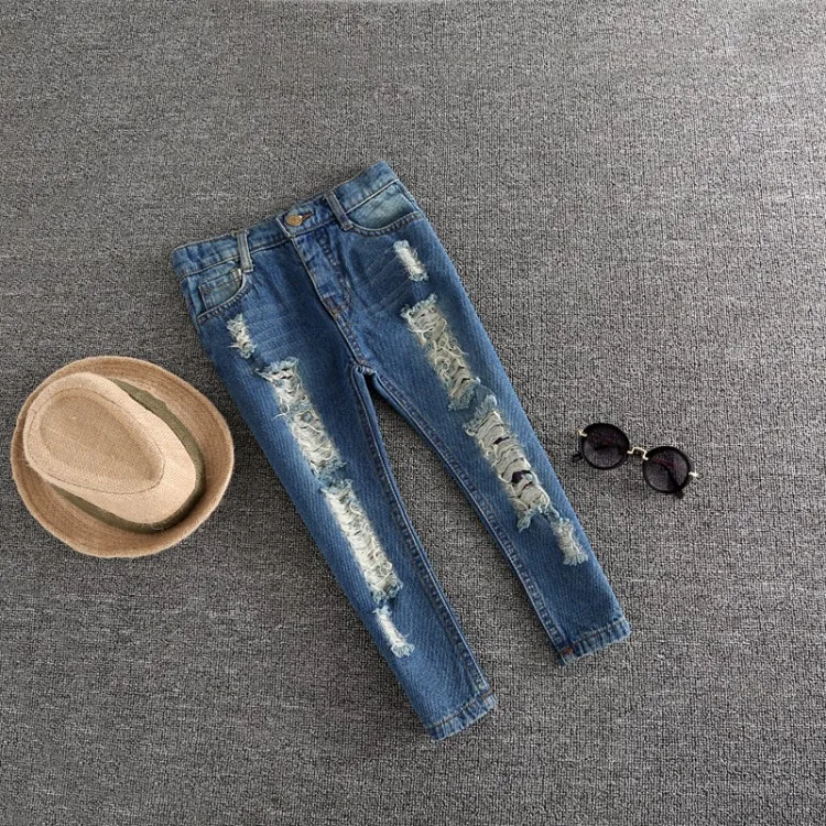 2-7Yrs Children Broken Hole Pants Trousers 2015 Baby Boys Girls Jeans Brand Fashion Autumn Kids Trousers Children Clothing ZJ04