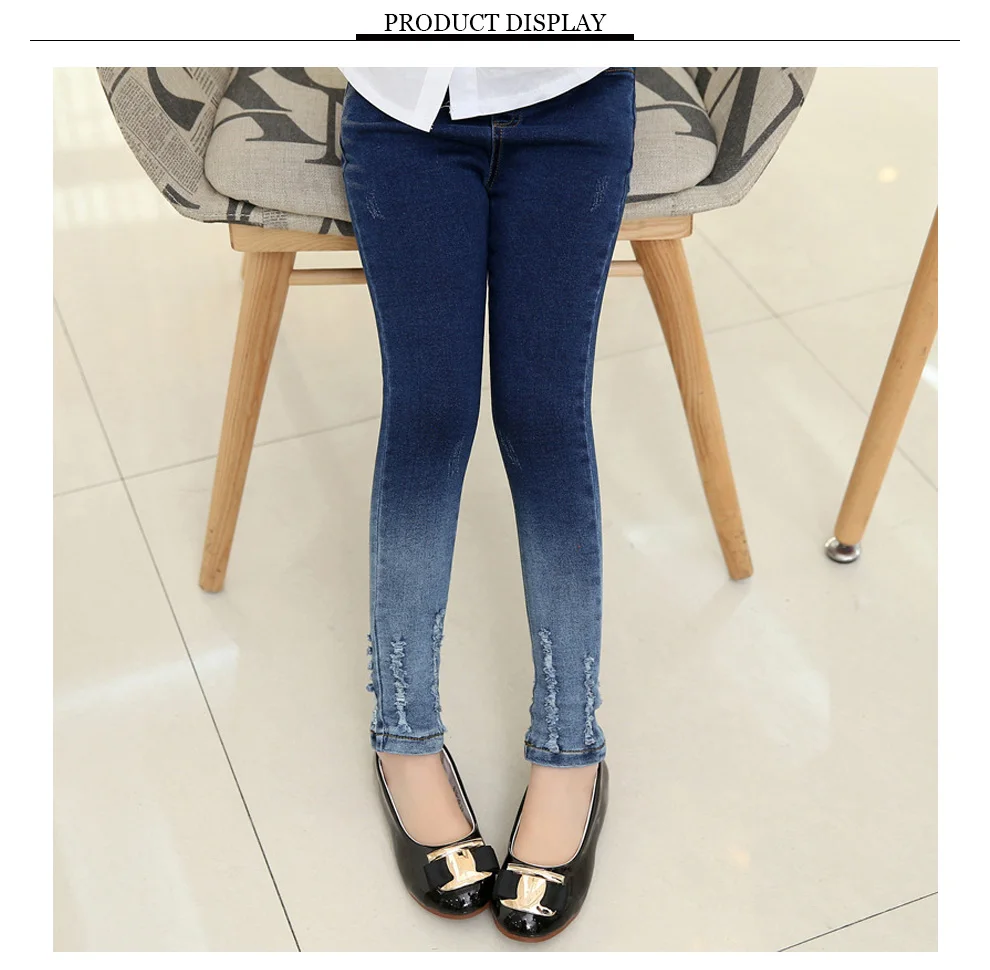 Children Girls Denim Jeans New 2017 Spring Fashion Elastic Waist Pants Kids Casual Solid Skinny Straight Trousers Clothes Hot