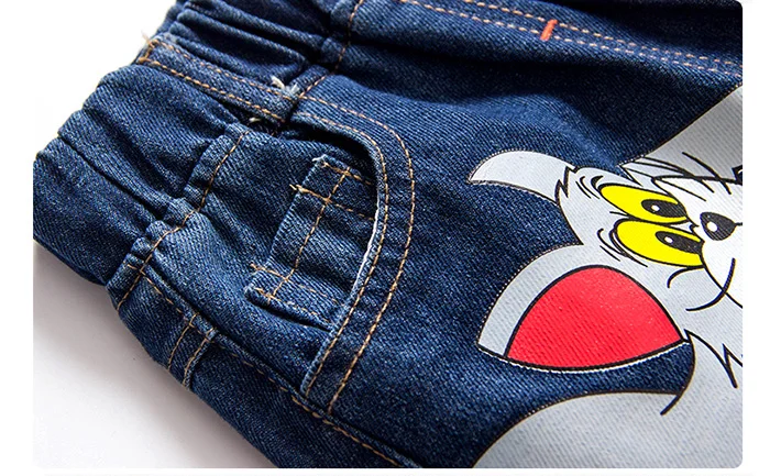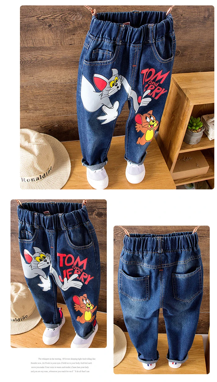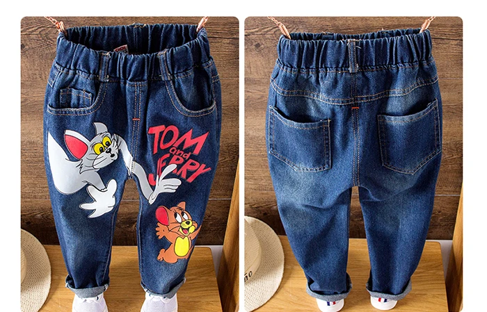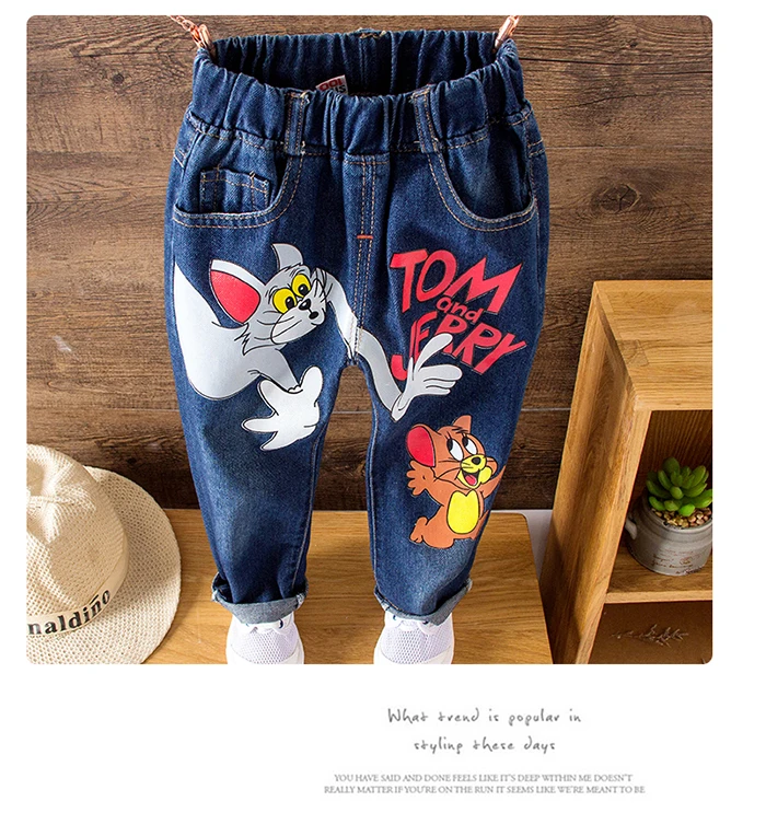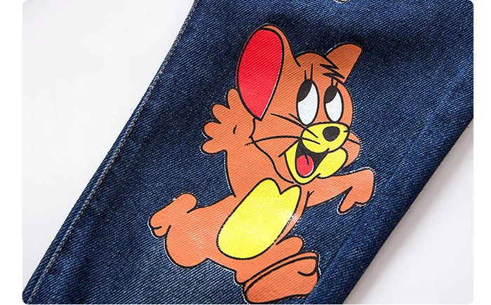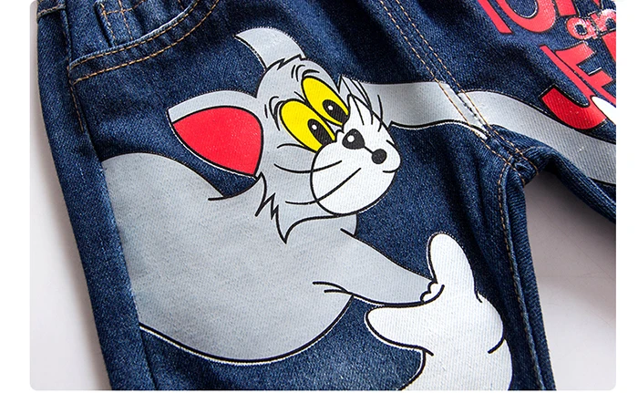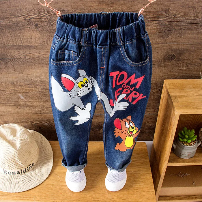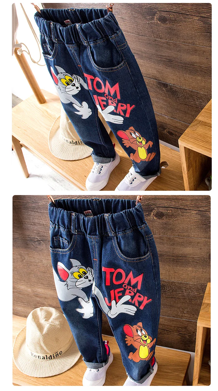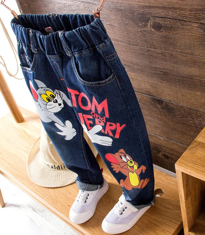 Girls Kids Jeans Brand Children Trousers jeans boys Cartoon Cat and Mouse Design Elastic Waist Trousers Children’s Jeans