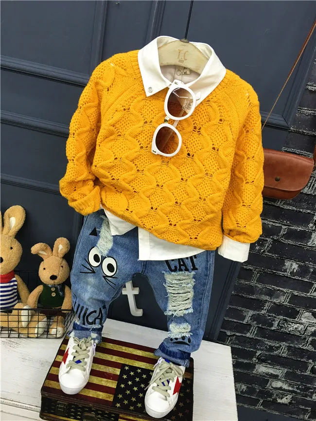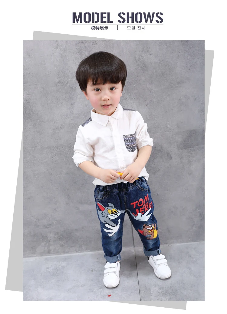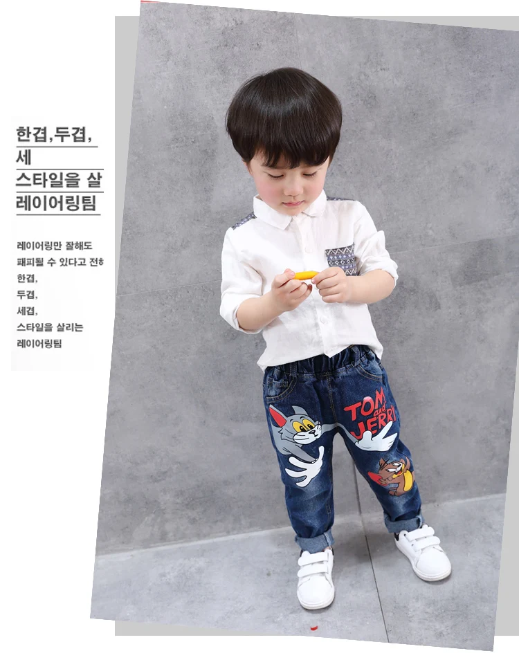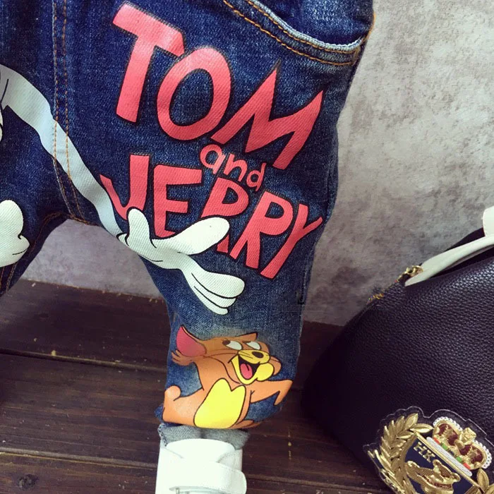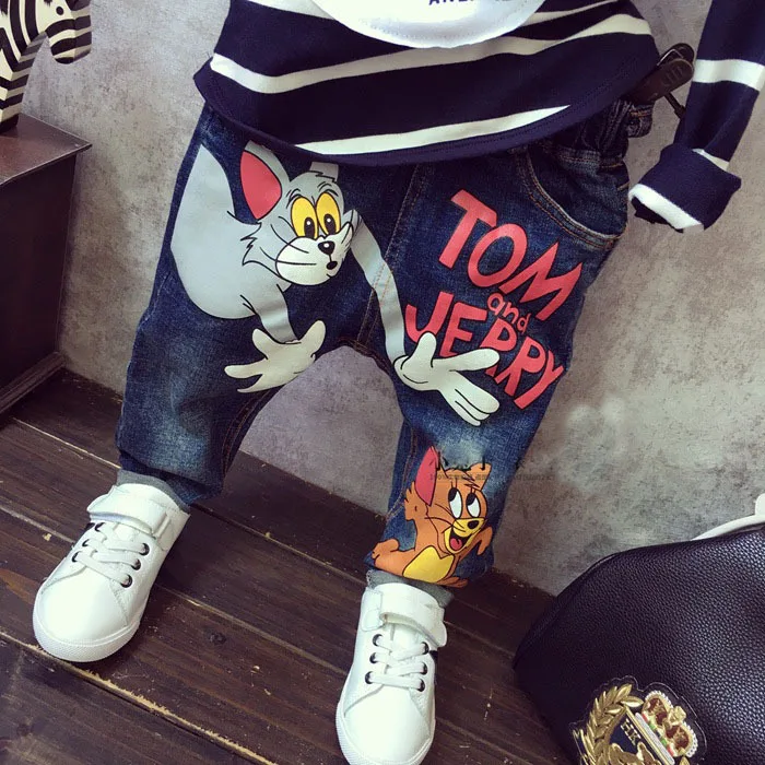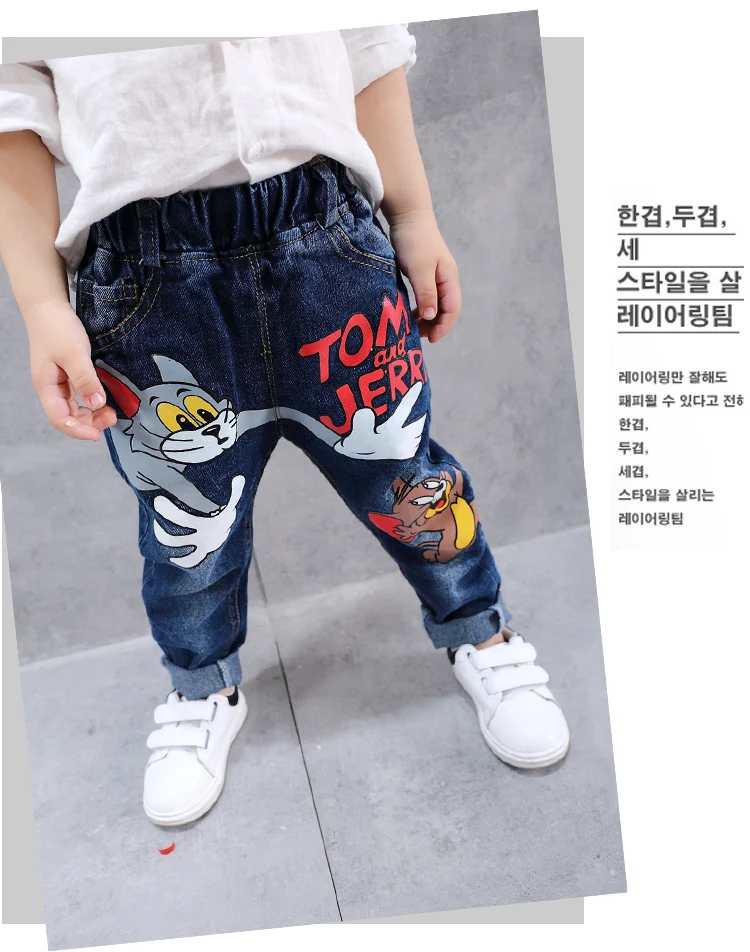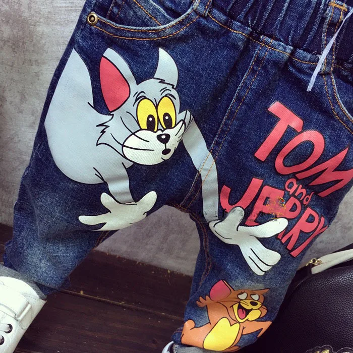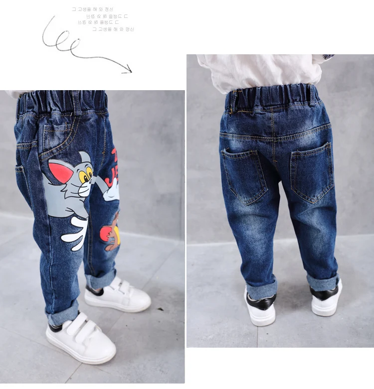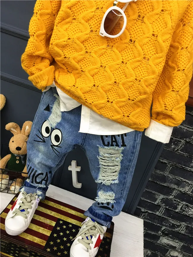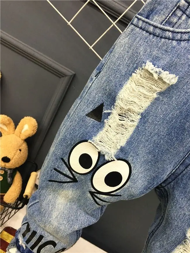 New Girls Jeans Spring Autumn Children Trousers 1-7Yrs Baby Boys Girls Jeans Boys Casual Hole Pants Cartoon Cat Jeans For Kids