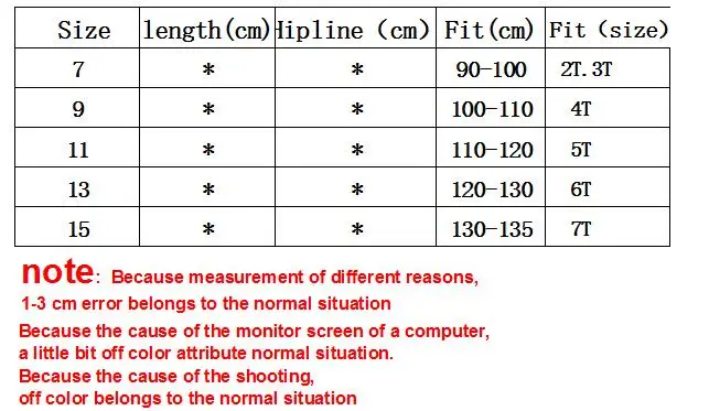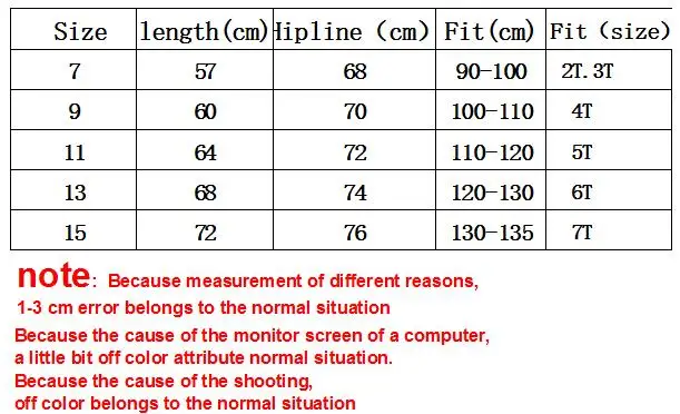 Size: 7=2T/3T 9=4T 11=5T 13=6T 15=7T