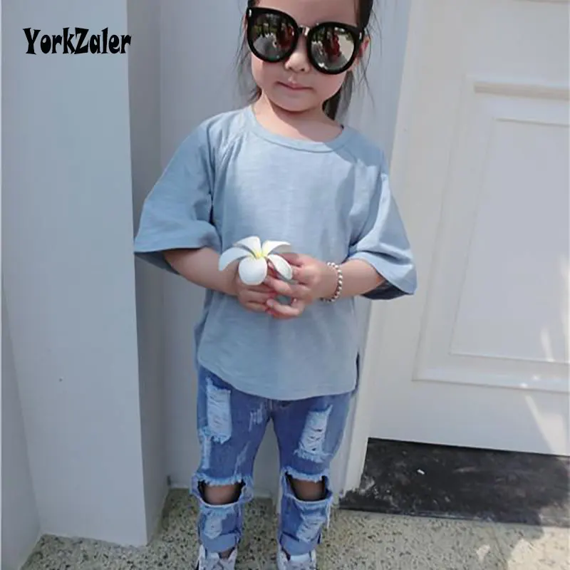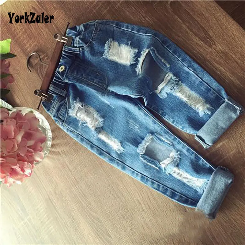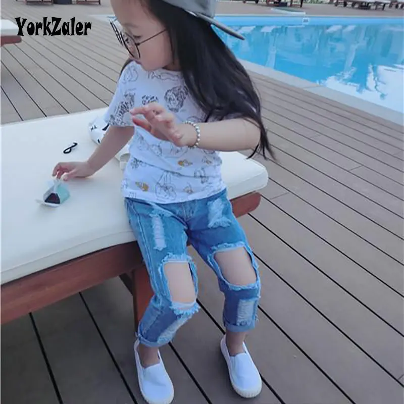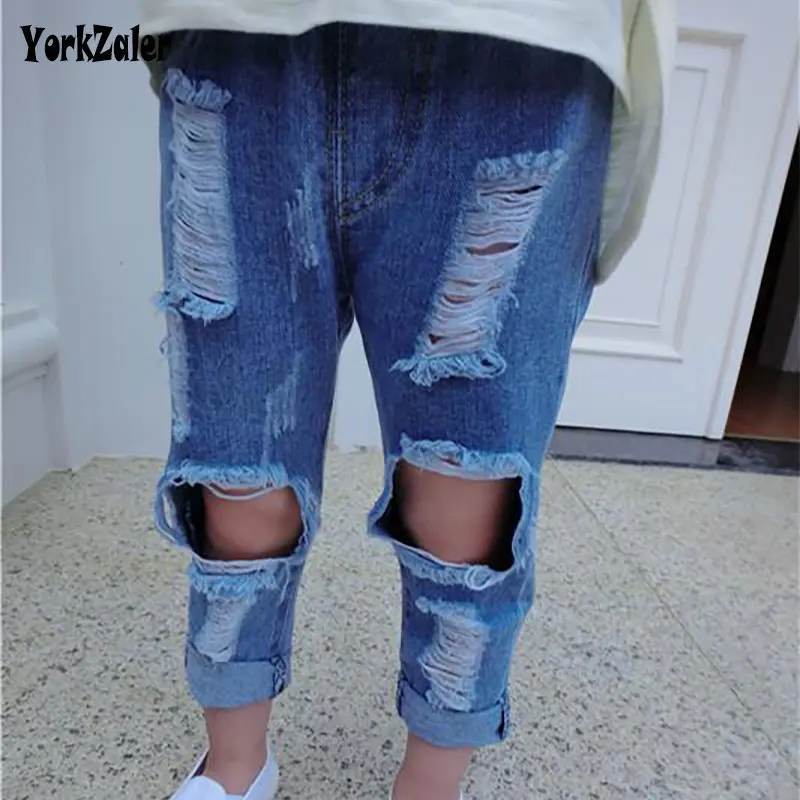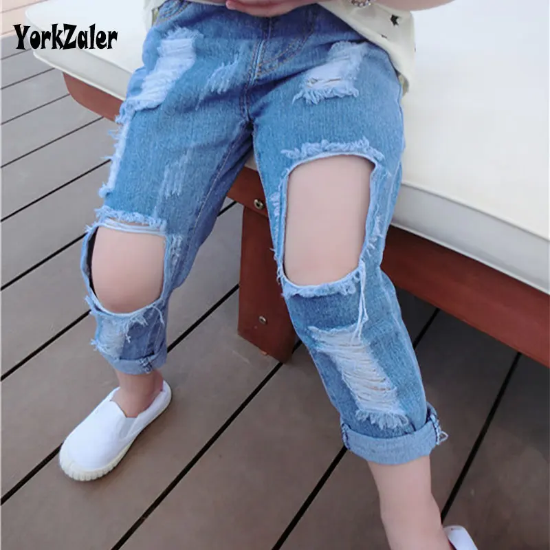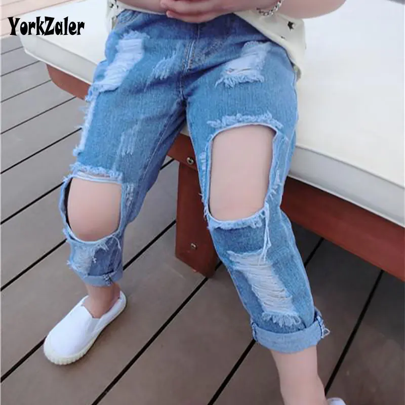 New Summer Kids Jeans Pants Clothing Children Jeans Kids Girls Elastic Casual Demin Hole Pants Brand Fashion Trousers For Girls