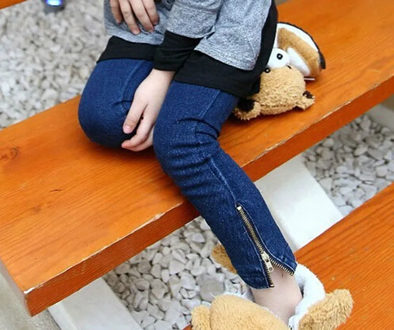Retail Jeans Pants for Girls 2017 Kids Girl Skinny Jeans Children Pants Elastic Waist Deep Blue Kids 3 5 7 8 12 Years Trousers