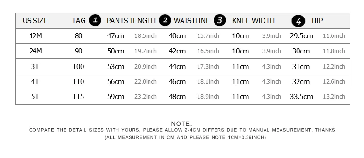 [Description]: Baby Pants [Color]: As The Photos [MOQ]: 1 pcs [Material]: Cotton [Packaging]: 1 pcs Packed In 1 Bag Dear customers, because size has different definition from country to county, please consider not only sizes,but measurement data. (Unit:cm 1 Inch=2.54cm). … Read More