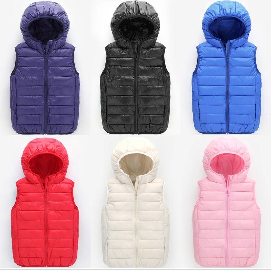 A15 Kids Vest Children Girls Vest Hooded Jacket Winter Spring Waistcoats for Boy Baby Outerwear Coats Big Teens 4 5 8 10 12 Year
