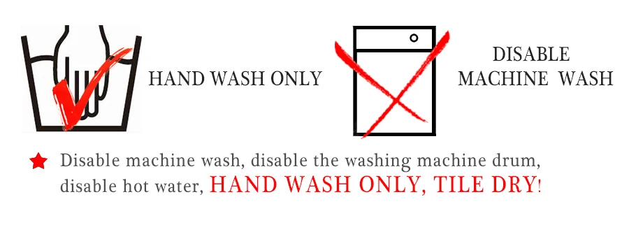 Disable machine wash, disable the washing machine drum, disable hot water, hand wash only, tile dry!