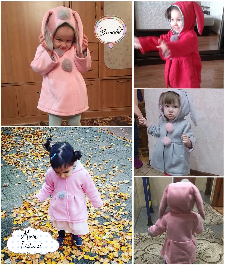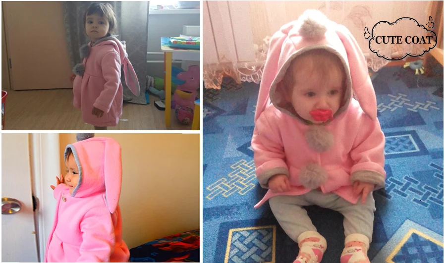 Product Name:Cute Rabbit Ear Hooded Girls Coat Autumn Winter Warm Kids Jacket Outerwear Children Clothing Baby Tops Girl Coats