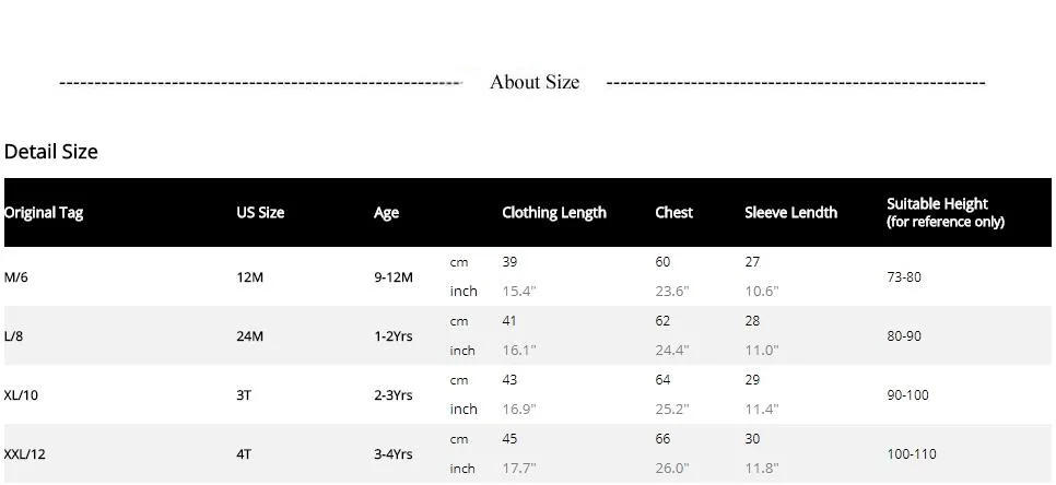 US Size :12M(80),24M(90),3T(100),4-5T(110)