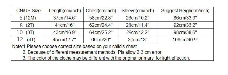 US Size :12M(80),24M(90),3T(100),4T(110)