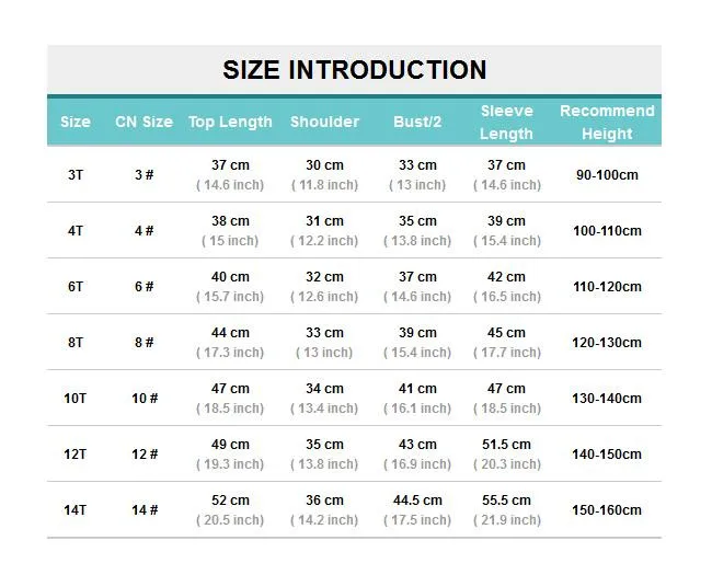 | Size | CN Size | Top Length | Shoulder | Bust/2 | Sleeve Length | Recommend Height |