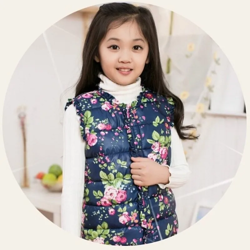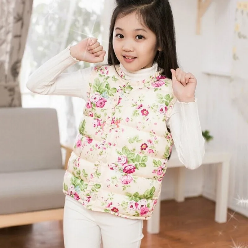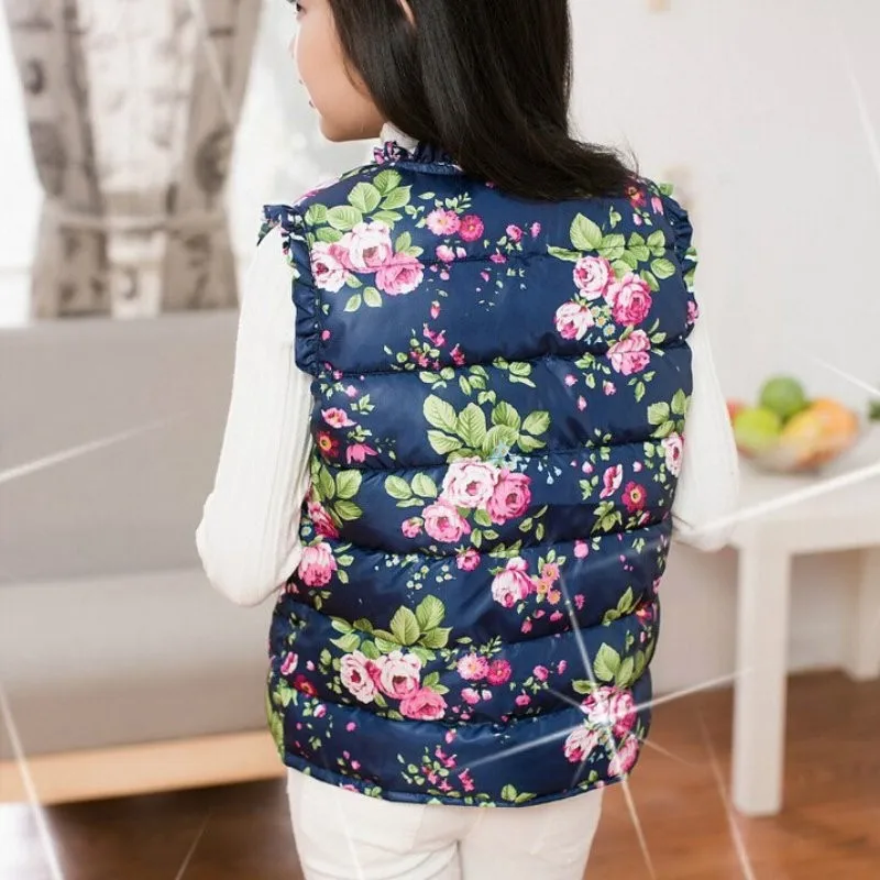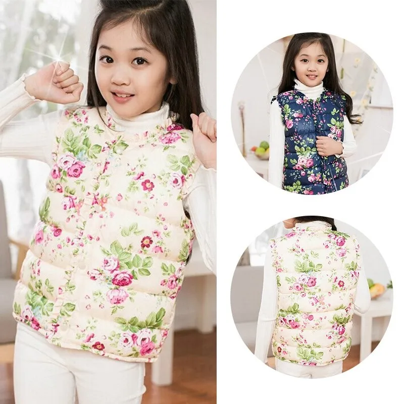 Hot Sale Children Girl Winter Outerwear Floral Coats Thick Princess Girls Vest Fashion Jackets Baby Warm Waistcoat 2017 New