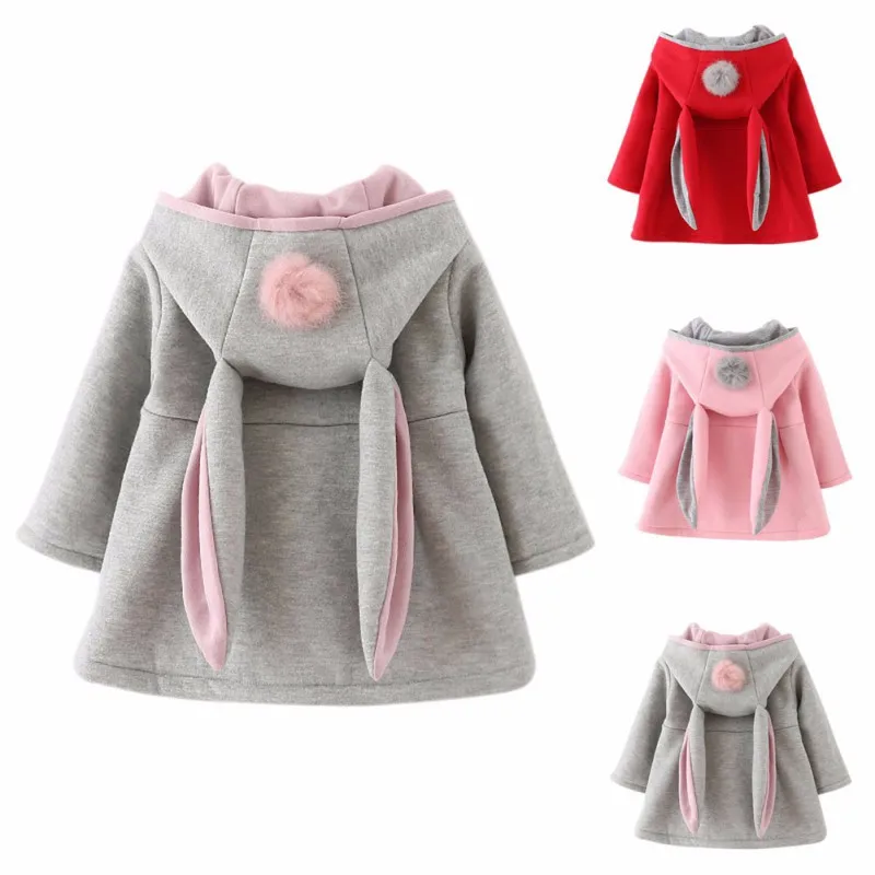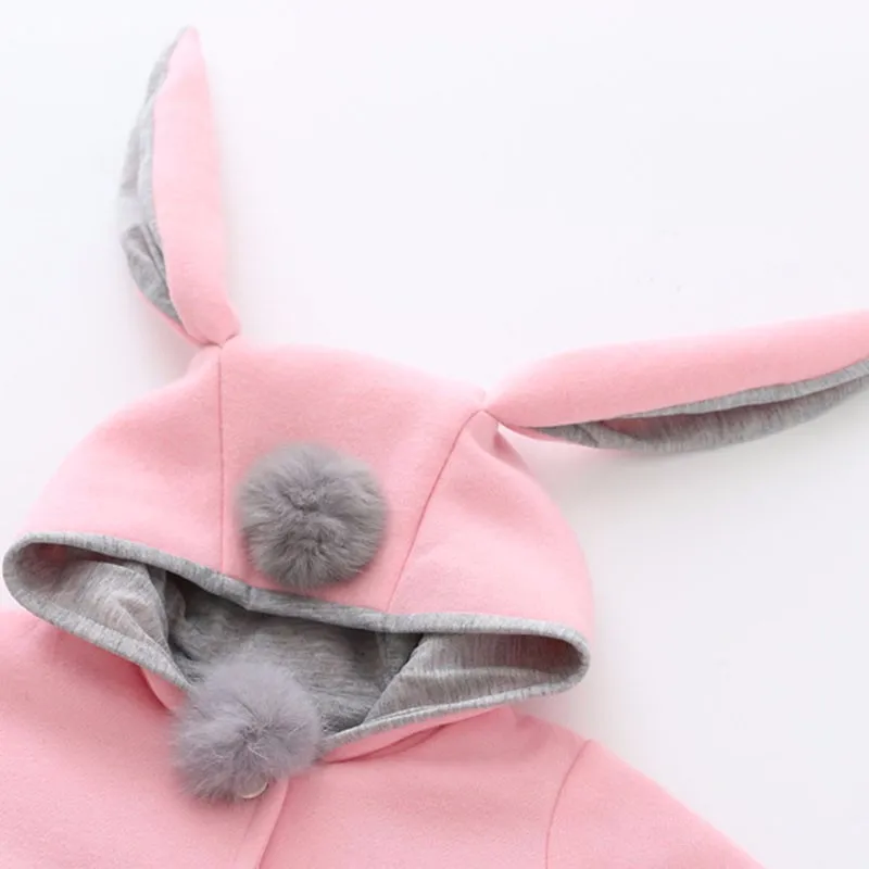 Girls Coats Cute Cartoon Rabbit Ear Hooded Jacket Autumn Winter Long Sleeve Children Warm Outerwear Kids Coat